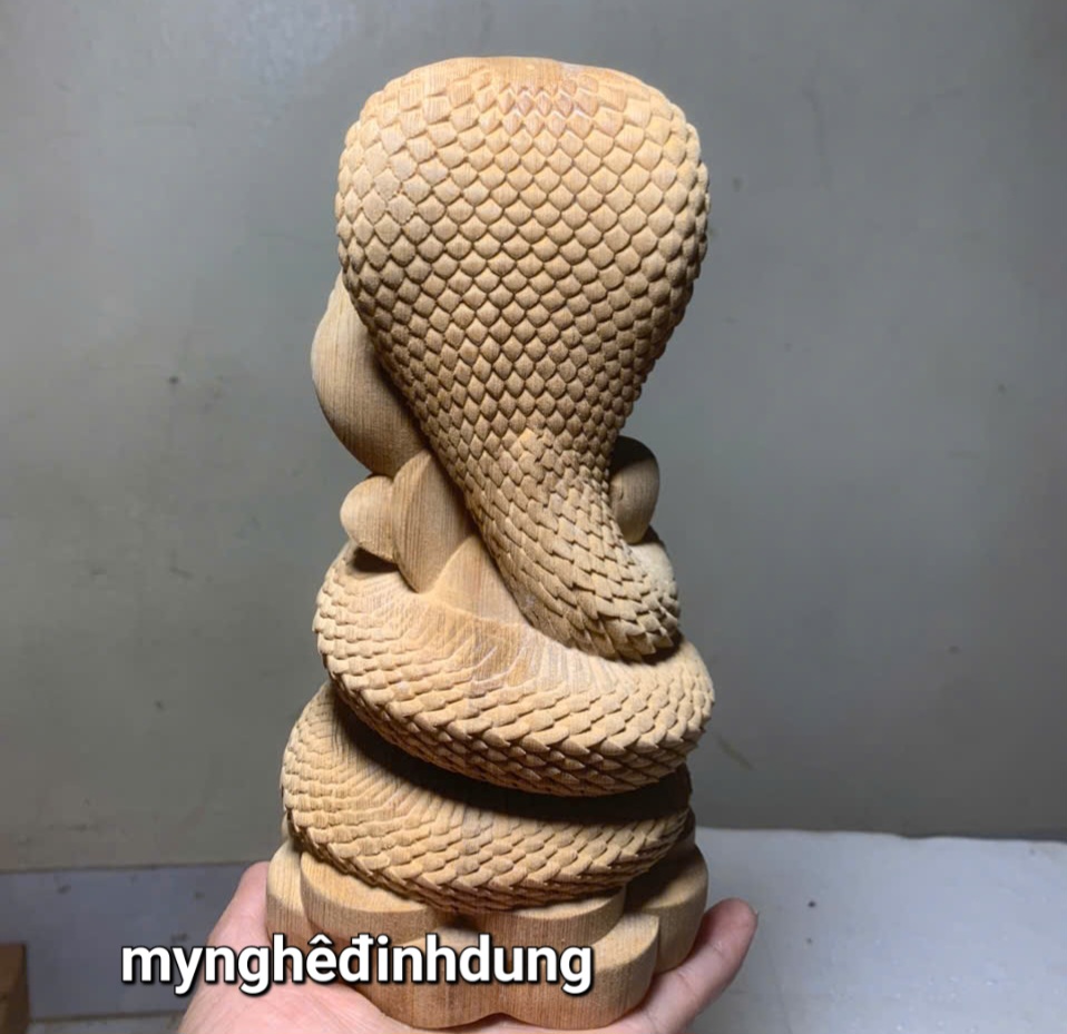 _ Tượng thần rắn bảo vệ đức Phật được làm bằng chất liệu gỗ ngọc Am liền khối tự nhiên 100% _ kt cao 40x19x18cm _ Tượng được chạm khắc vô cùng tỉ mỉ tinh