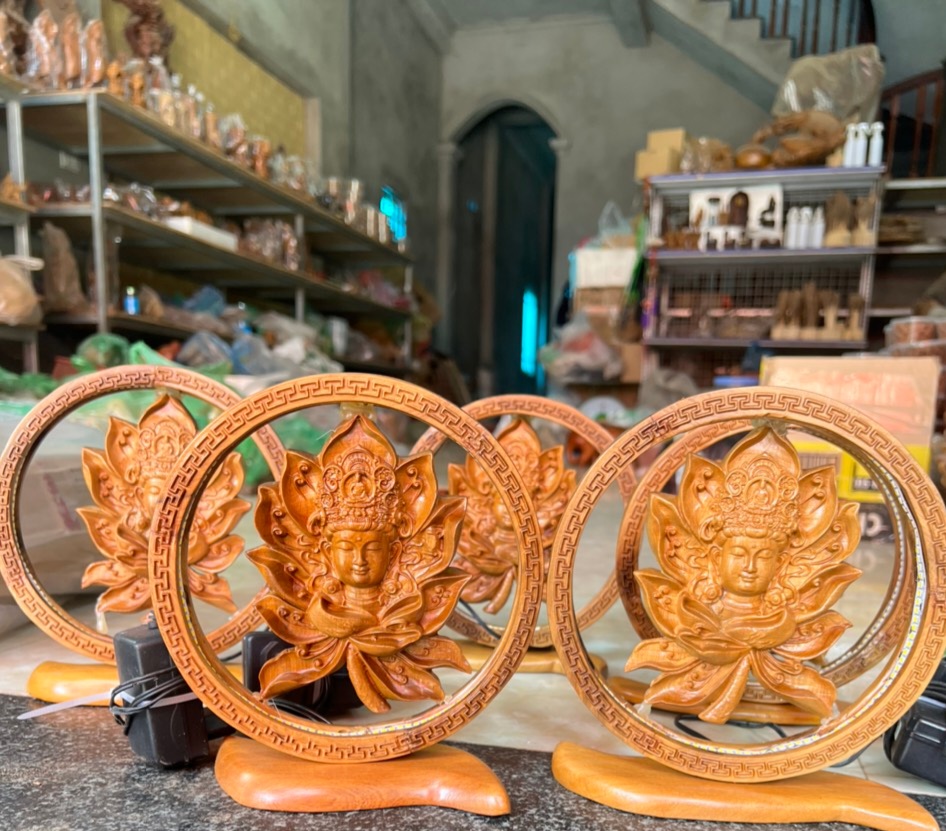 Tượng diện phật được làm bằng chất liệu gỗ bách xanh tự nhiên 100% Kt mặt tròn 20×20×6cm _ Tượng được khắc tỉ mỉ ,tinh sảo kỳ công .Đi hầu hết tất cả mọi chi tiết góc ngách nội dung hoa văn của tượng đều được gọt tỉa chỉnh sửa hoàn toàn bằng tay thủ công .Diện phật được làm và hoàn thiện do bàn tay khối óc tài hoa ,Từ những người thợ dầy dặn kinh nghiệm ,cũng như tay nghề cao trong làng nghề truyền thống .Chính vì thế diện phật bằng gỗ bách xanh đã đáp ứng đầy đủ mọi tiêu trí cần thiết ,Như ( Đẹp bền rẻ ) Thẩm mỹ nghệ thuật với chất lượng tuyệt vờ