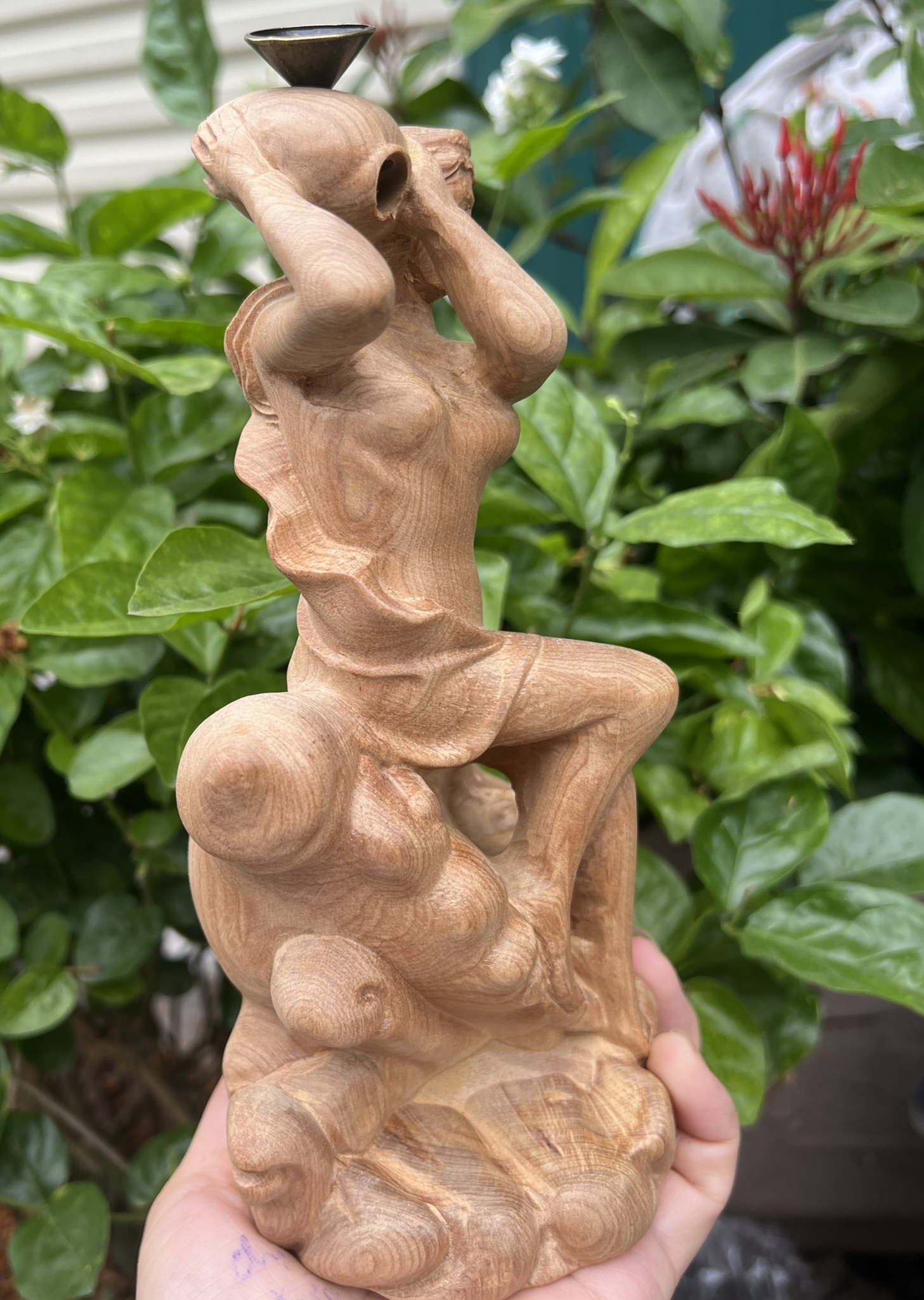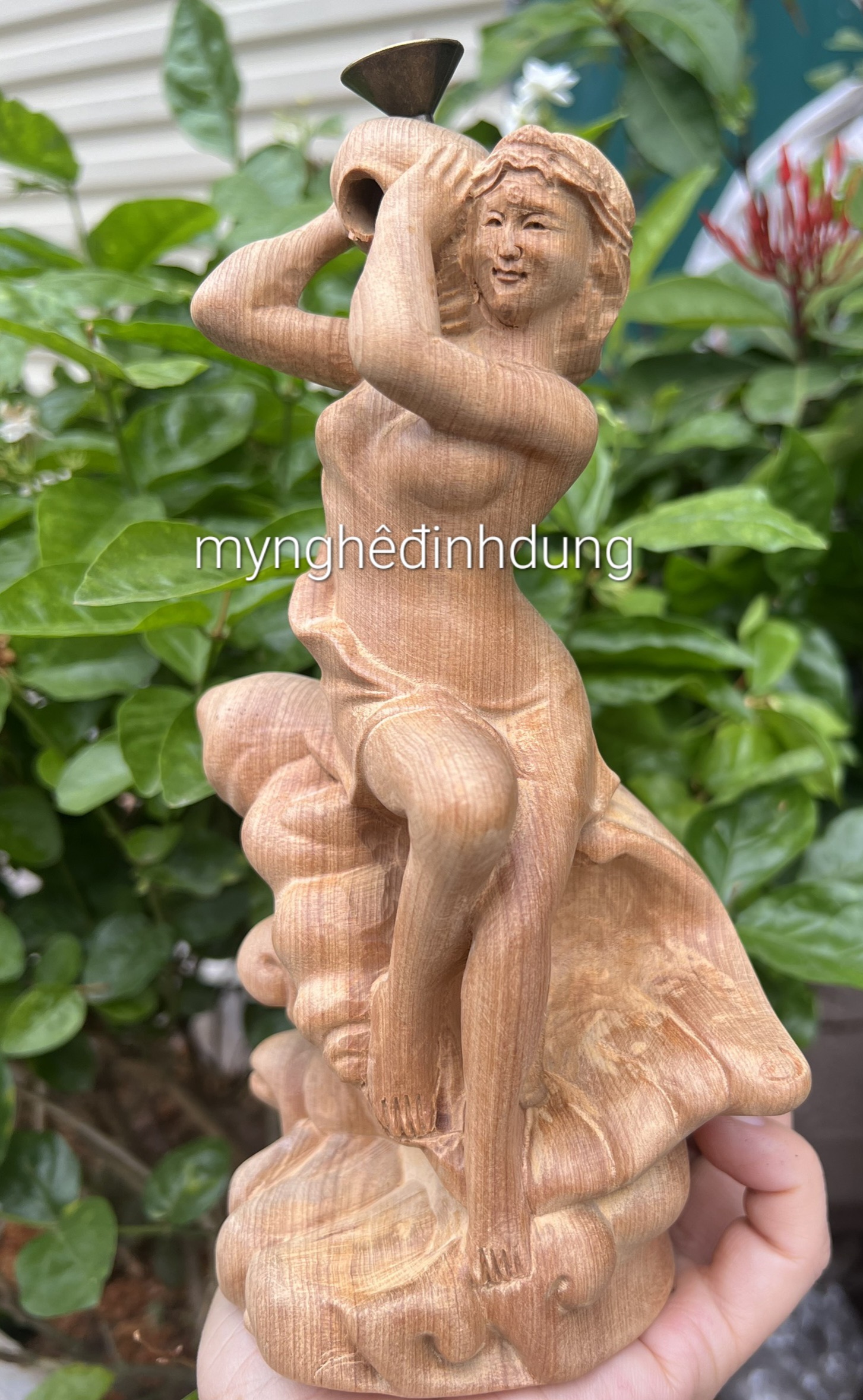 ✨Tượng điêu khắc nàng tiên ốc xông trầm gỗ bách xanh thơm nức kt cao 20×9×8cm