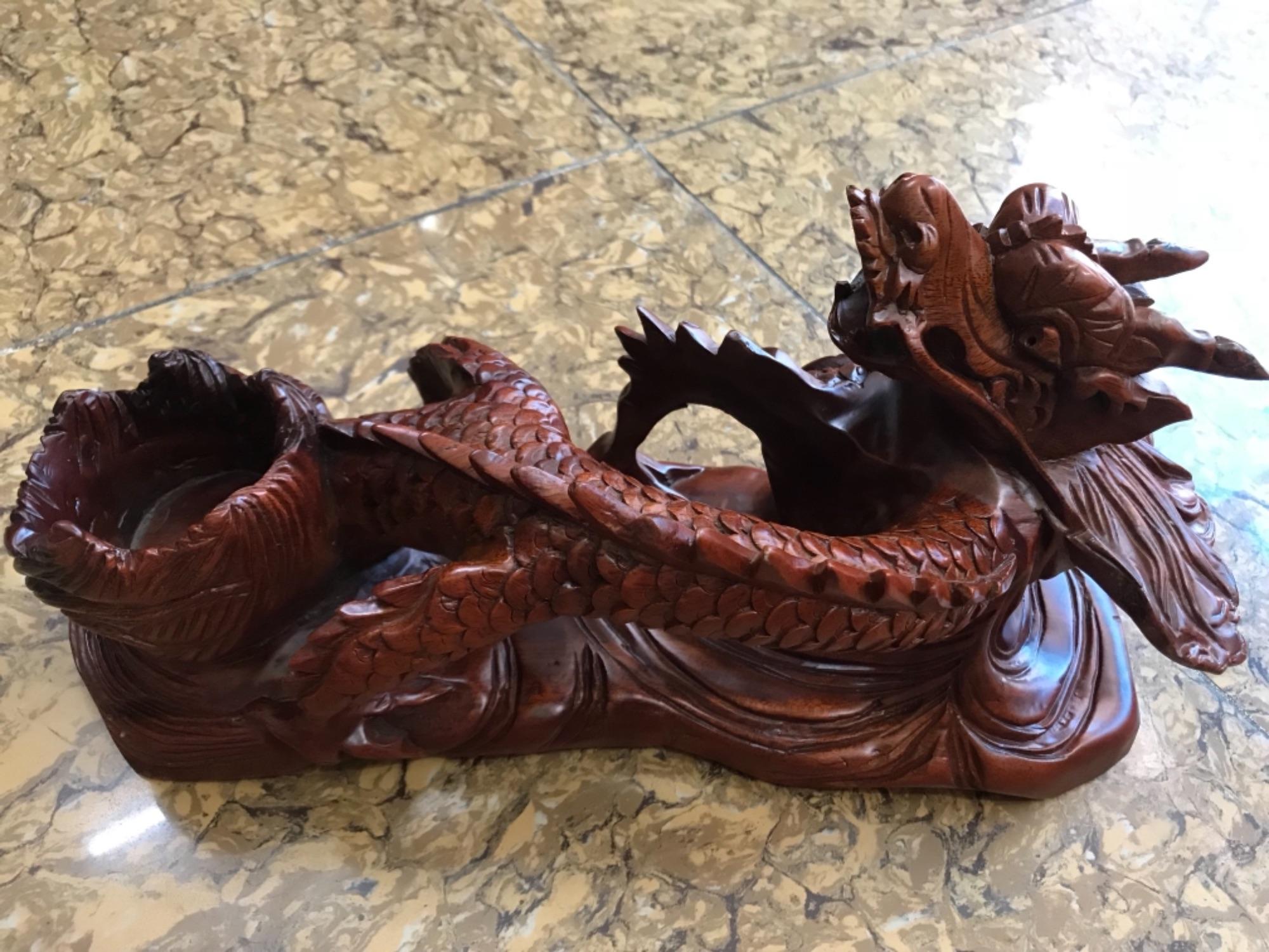 Tượng Gỗ Mỹ Nghệ Chạm Rồng Lượn có chỗ gạt tàn size dài 35cm cao 18cm sâu 12cm Anh Chị trưng trên bàn phòng khách ở nhà, công ty hay làm quà tặng ạ -