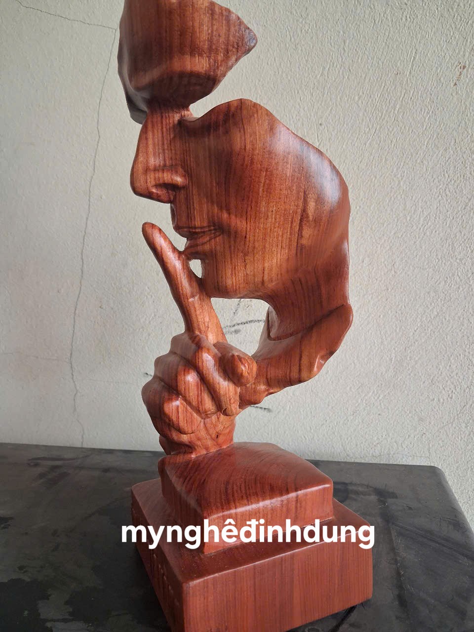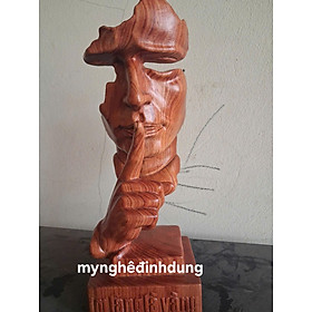 ✨Tượng im lặng là vàng bằng gỗ hương đá đẹp long lanh cao 34x11x12cm