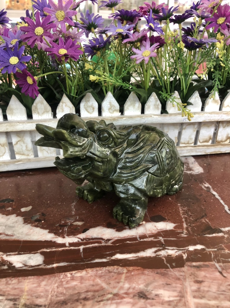 ✨Tượng Long Quy ( Rùa đầu Rồng ) phong thủy đá ngọc Ấn Độ - Dài 15 cm