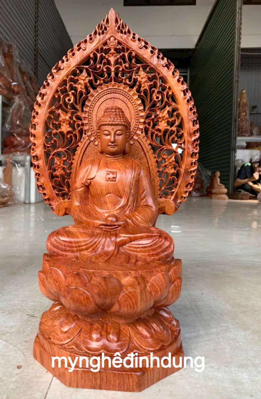 ✨Tượng phật adi đà bằng gỗ hương đá 30x17x16cm+ lá chắn hòa quang cao tổng 41cm
