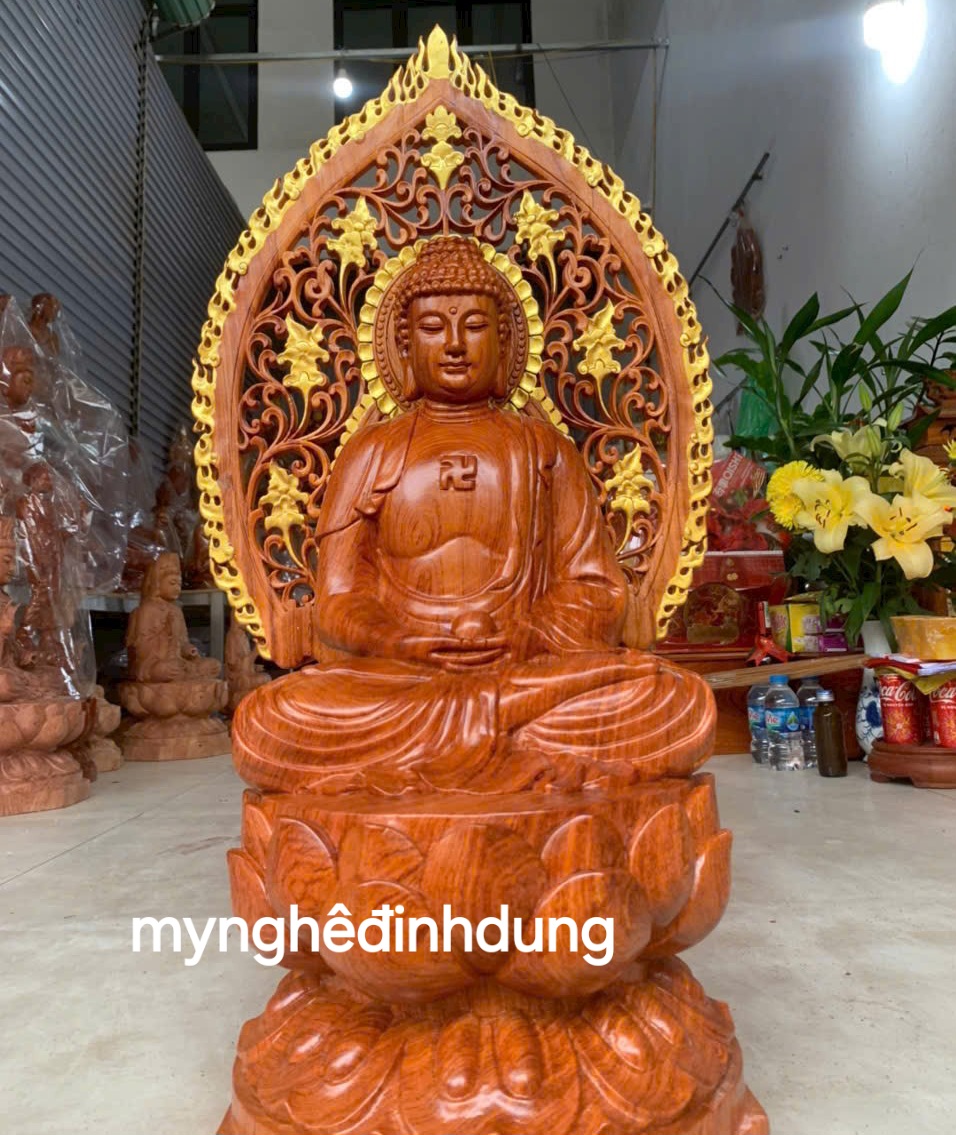 Tượng phật adiđa được làm bằng chất liệu gỗ hương đá tự nhiên 100% Kt cao 30x17x16cm + lá chắn hòa quang cao tổng 41cm _ Tượng được chạm khắc gọt tỉa vô cùng tỉ mỉ tinh xảo kỳ công. ĐI HẦU tất cả mọi chi tiết góc ngách nội dung hoa văn của Tượng đều được gọt tỉa chỉnh sửa sắc nét hoàn toàn bằng tay thủ công truyền thống.