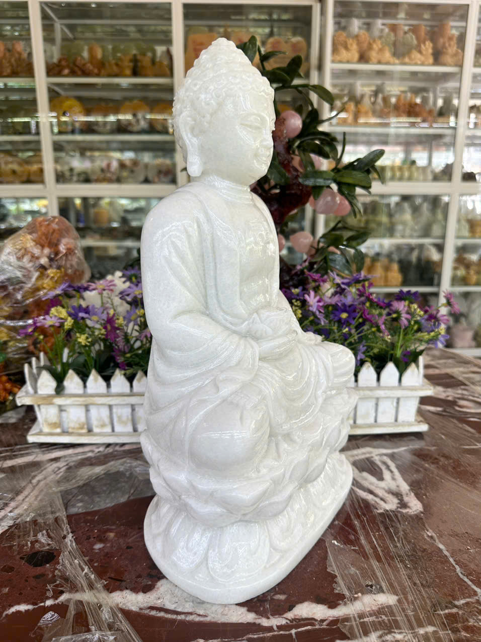 ✨Tượng Phật Adida, phật tổ như lai ngồi đài sen đá cẩm thạch trắng - Cao 40cm