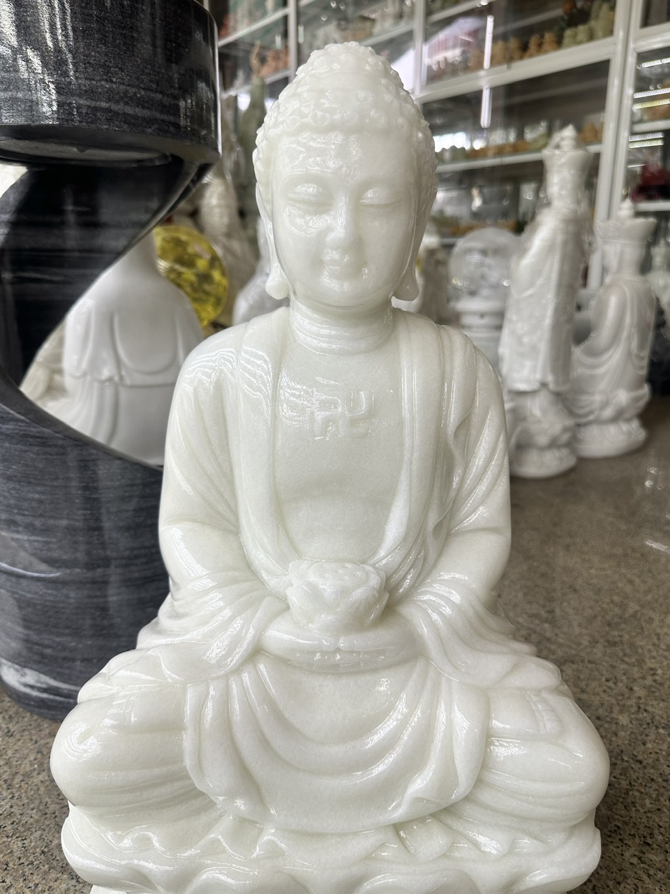 ✨Tượng Phật Adida, phật tổ như lai ngồi đài sen đá cẩm thạch trắng - Cao 50cm