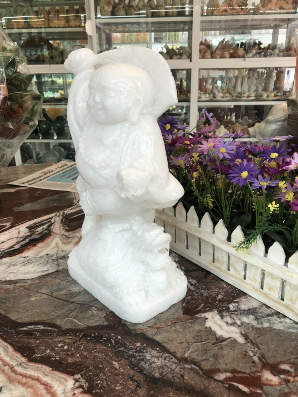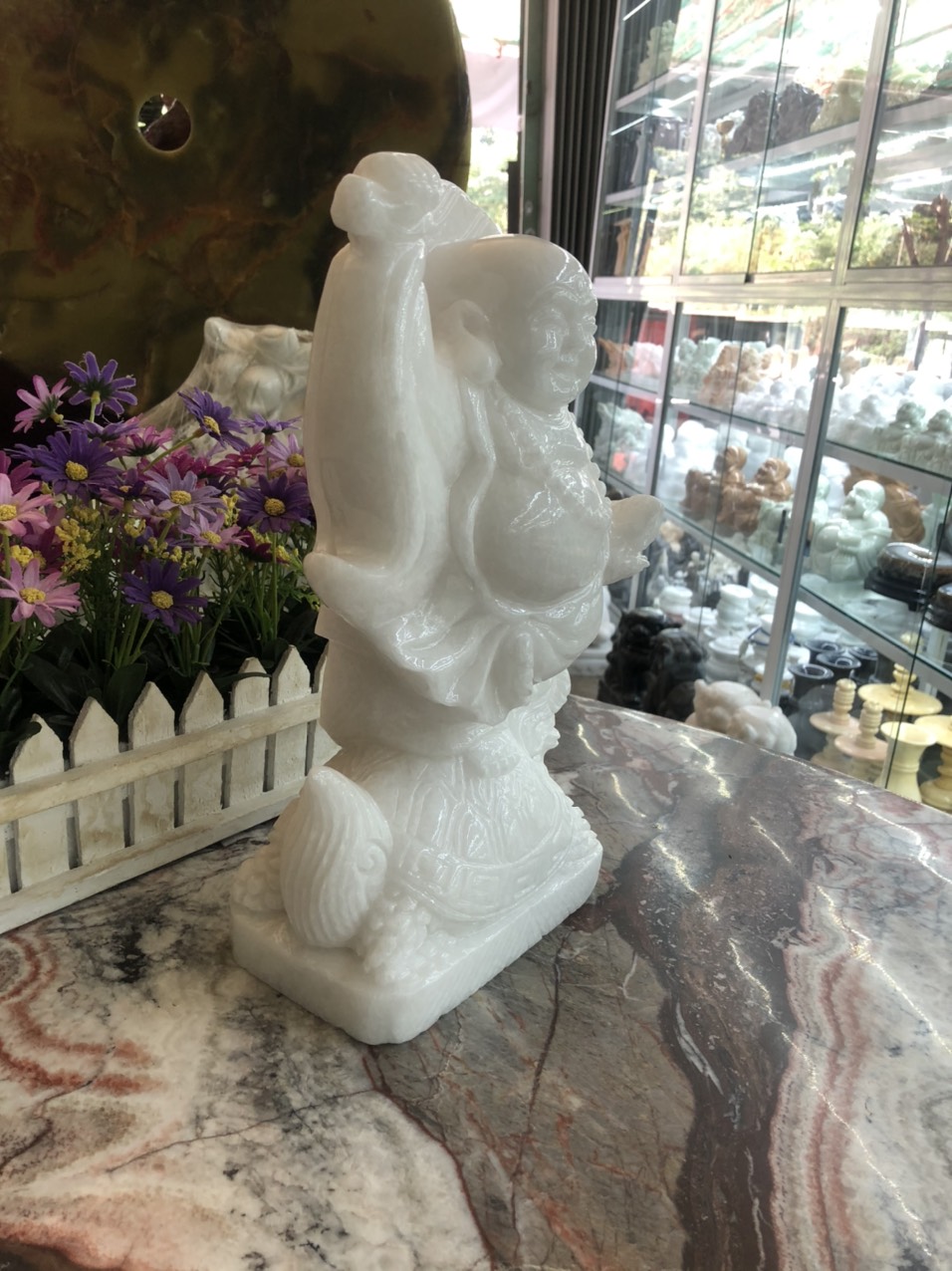 ✨Tượng Phật Di Lặc cưỡi Long Quy phong thủy đá cẩm thạch trắng - Cao 30 cm