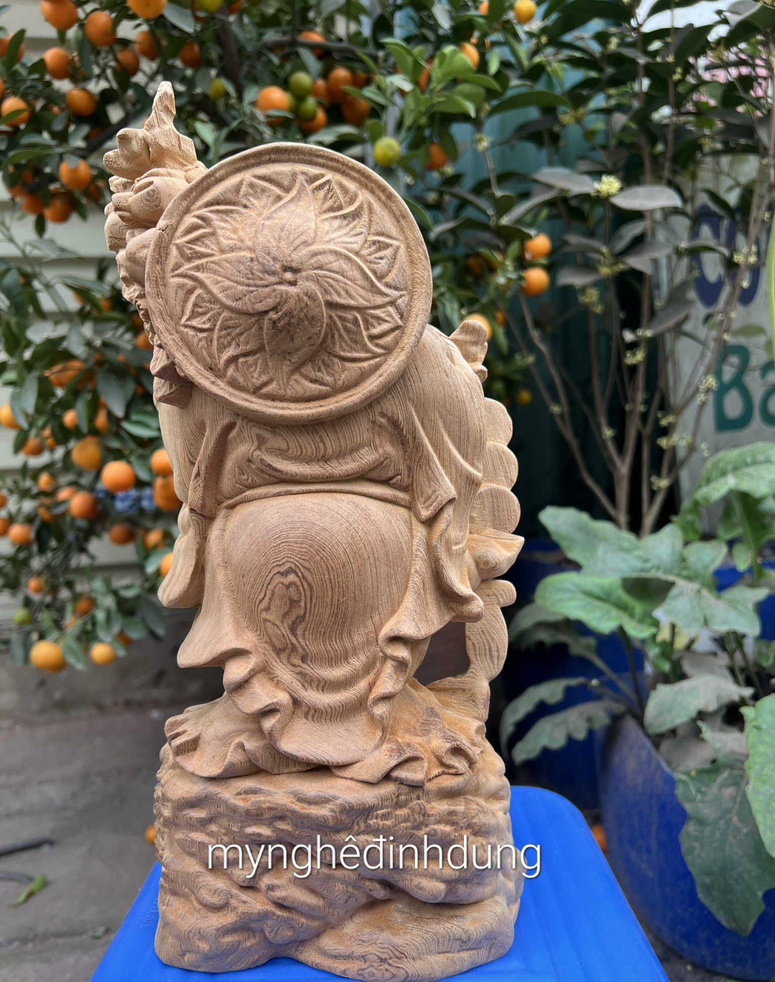 Tượng Phật Bà được chạm khắc vô cùng tỉ mỉ , nổi bật thần thái “ từ bi hỉ xả “ của Phật Bà Quan Âm luôn che chở, cứu giúp chúng sinh. Tượng có
