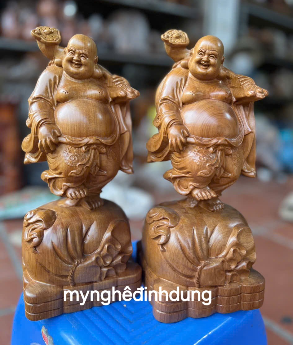 Mua tại TiktokTượng phật di lặc gánh tải vàng được làm bằng chất liệu gỗ bách xanh liền khối tự nhiên 100% Kt cao 30x12x12cm _ Tượng được chế tác làm và hoàn thiện từ bàn tay khối óc tài hoa Và những người thợ giàu kinh nghiệm cũng như tay nghề cao trong làng nghề truyền thống.