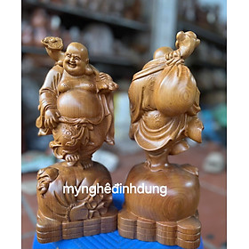 ✨Tượng phật di lặc gánh tải vàng bằng gỗ bách xanh thơm nức cao 30x12x12cm