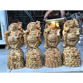 Tượng phật di lặc long quy gánh tiền cao 20cm đục máy cnc gỗ hương nam phi