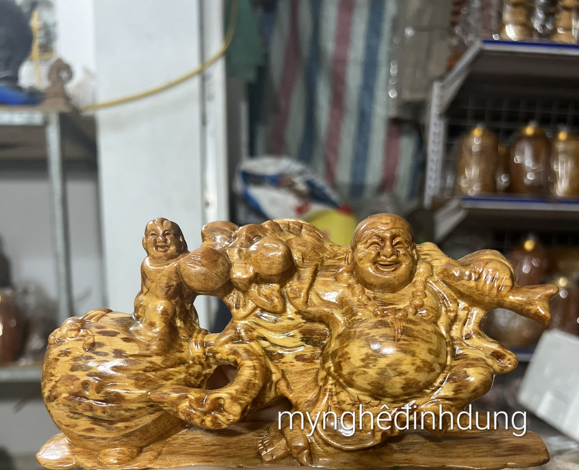 Phật di lặc kéo bao kim tài gỗ huyết long phong thủy giá 770,000VND