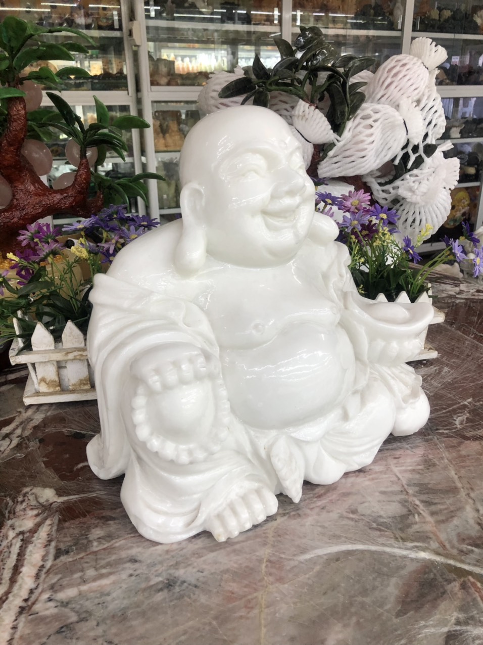 Tượng Phật Di Lặc Đá Cẩm Thạch Trắng Tự Nhiên - Vật Phẩm Bình An