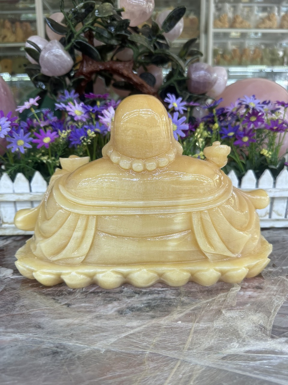 Chất liệu: Đá ngọc Hoàng Long Kích thước: Dài 50 cm x Rộng 20 cm x Cao 34 cm Khối lượng: 40 kg Phật Di Lặc trong Phong thủy Còn gọi là "Phật Cười", Di