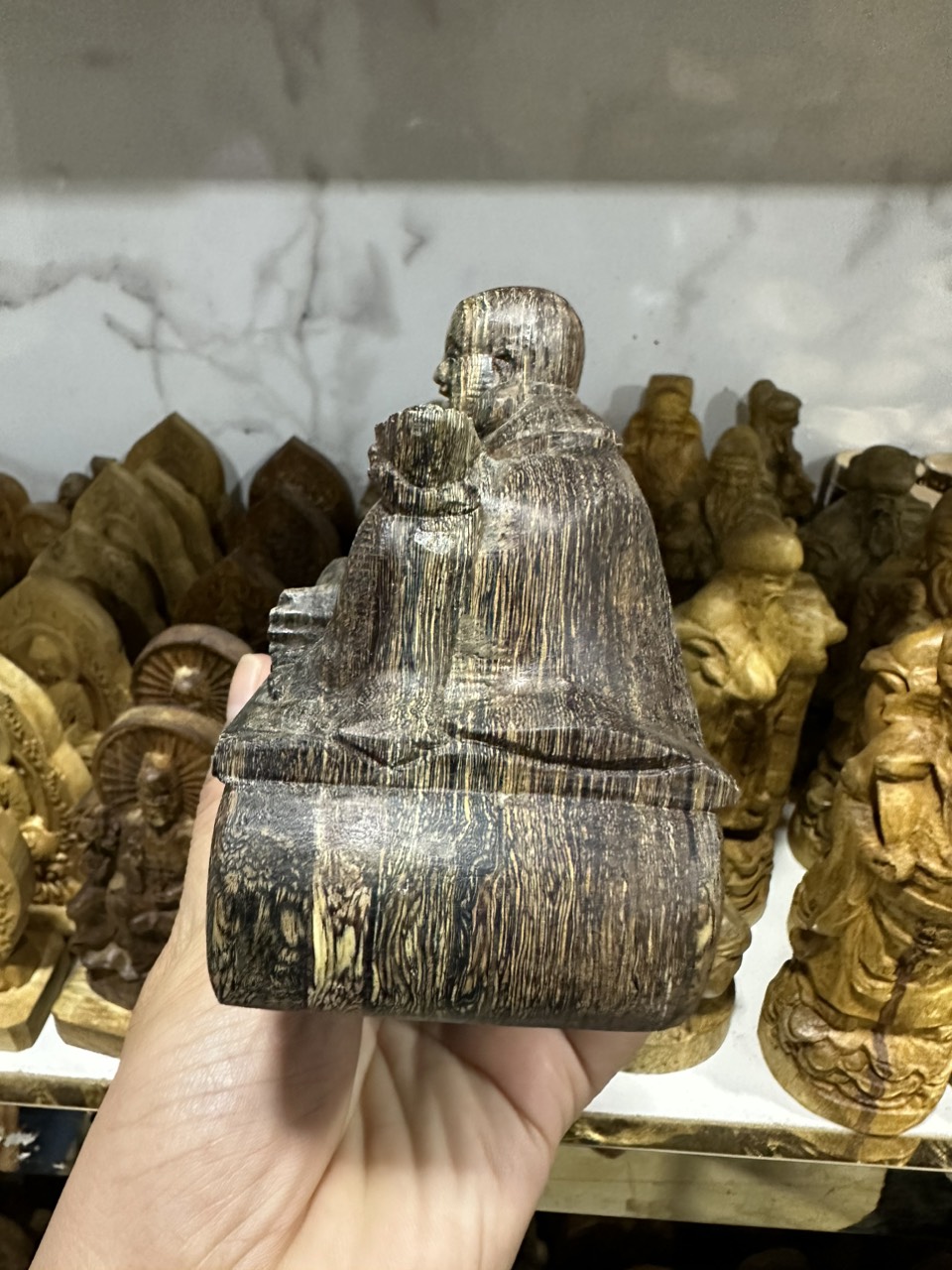✨Tượng phật Di Lặc phong thủy gỗ trầm hương sánh chìm để bàn làm việc, taplo xe ô tô, xe hơi