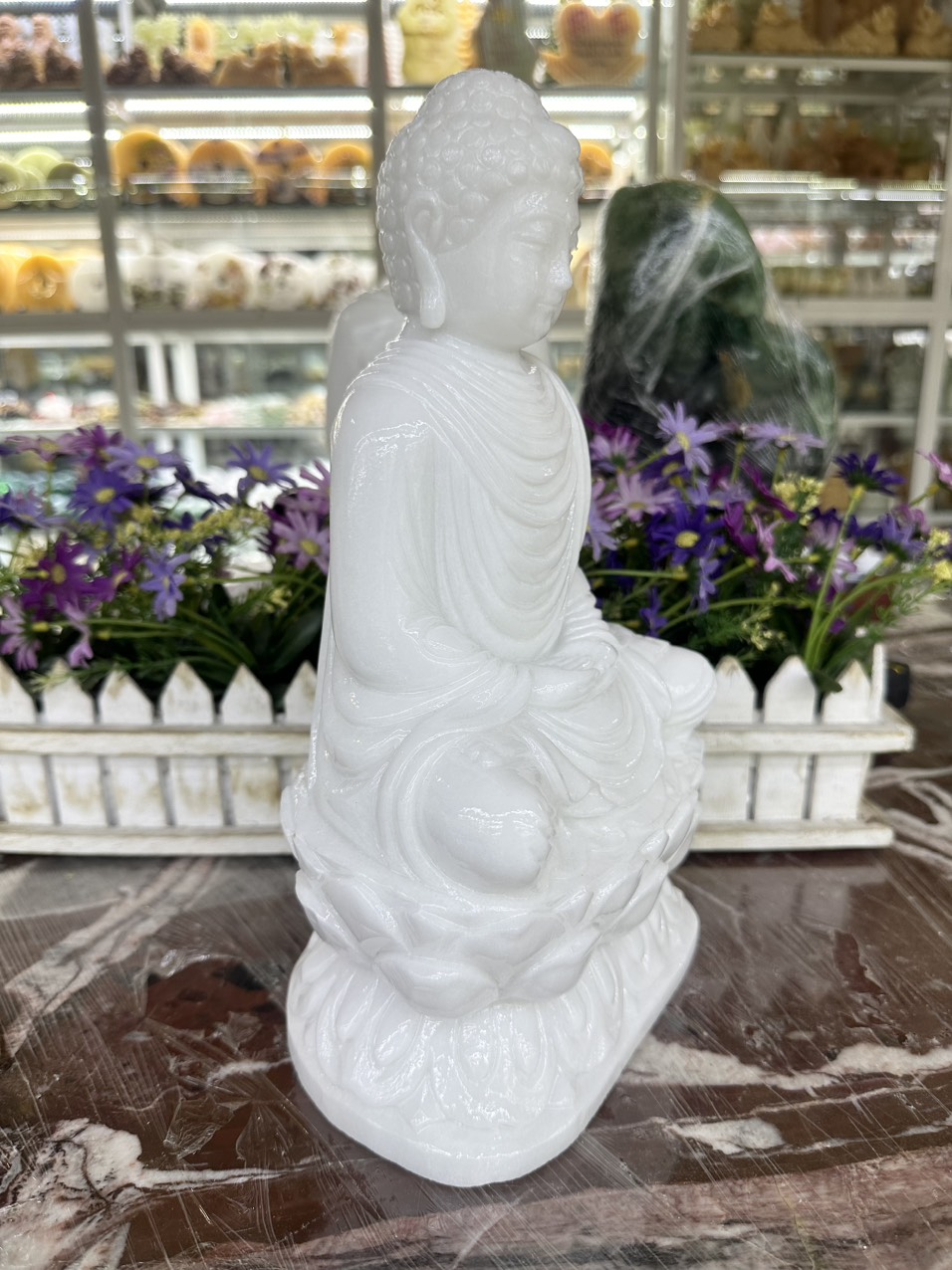 ✨Tượng Phật Thích Ca ngồi đài sen đá cẩm thạch trắng - Cao 30 cm