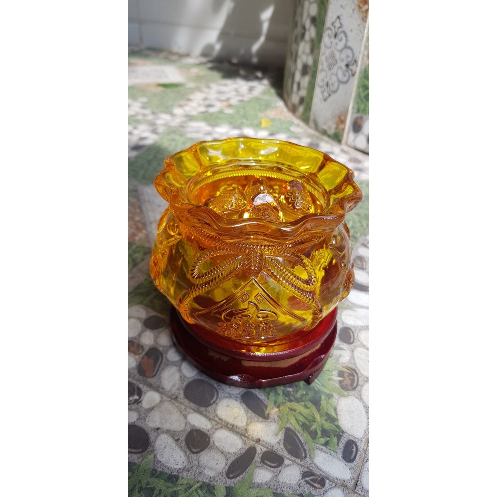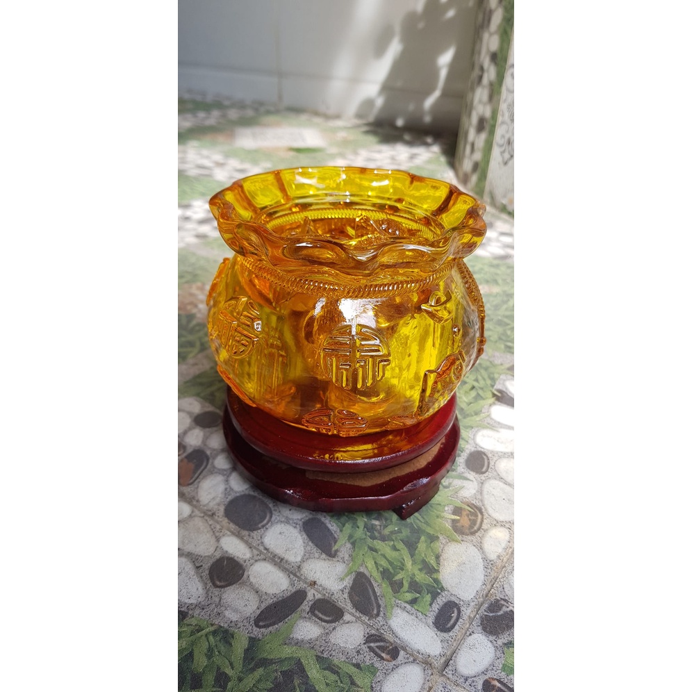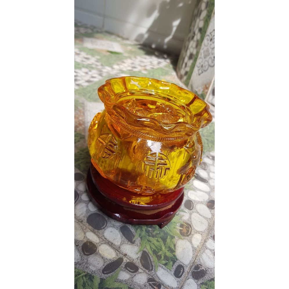 Tượng Phong Thủy Thố tụ tài to mới miệng kiểu màu vàng anh tài lộc 20 thỏi xiền vàng đá lưu ly tự nhiên đế gỗ size lớn đk 13cm x Cao 13cm cả đế x thố cao 9cm Hợp Anh Chị Mệnh Kim Thổ Thuỷ đặt bàn làm ...