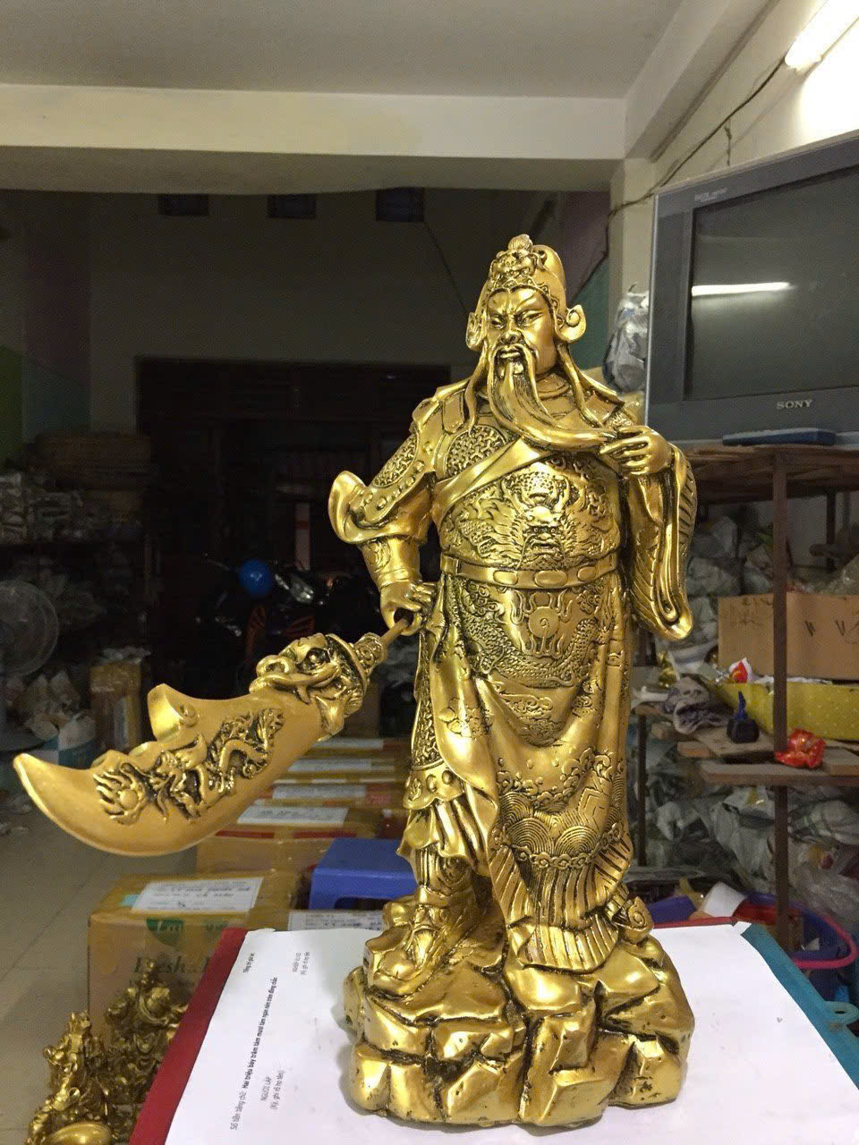 Tượng Quan công vuốt râu CTQ7 18.3 x 13.9 x 39.7cm mạ vàng hoặc màu xanh lựa chọn Kích thước: ngang 18.3 x rộng 13.9 x cao 39.7cm Nặng: 4.2kg Chất liệu: nhựa polyester Màu sắc: màu cẩm thạch, màu giả đồng Bạn muốn tặng quà cho bạn bè, người thân của mình