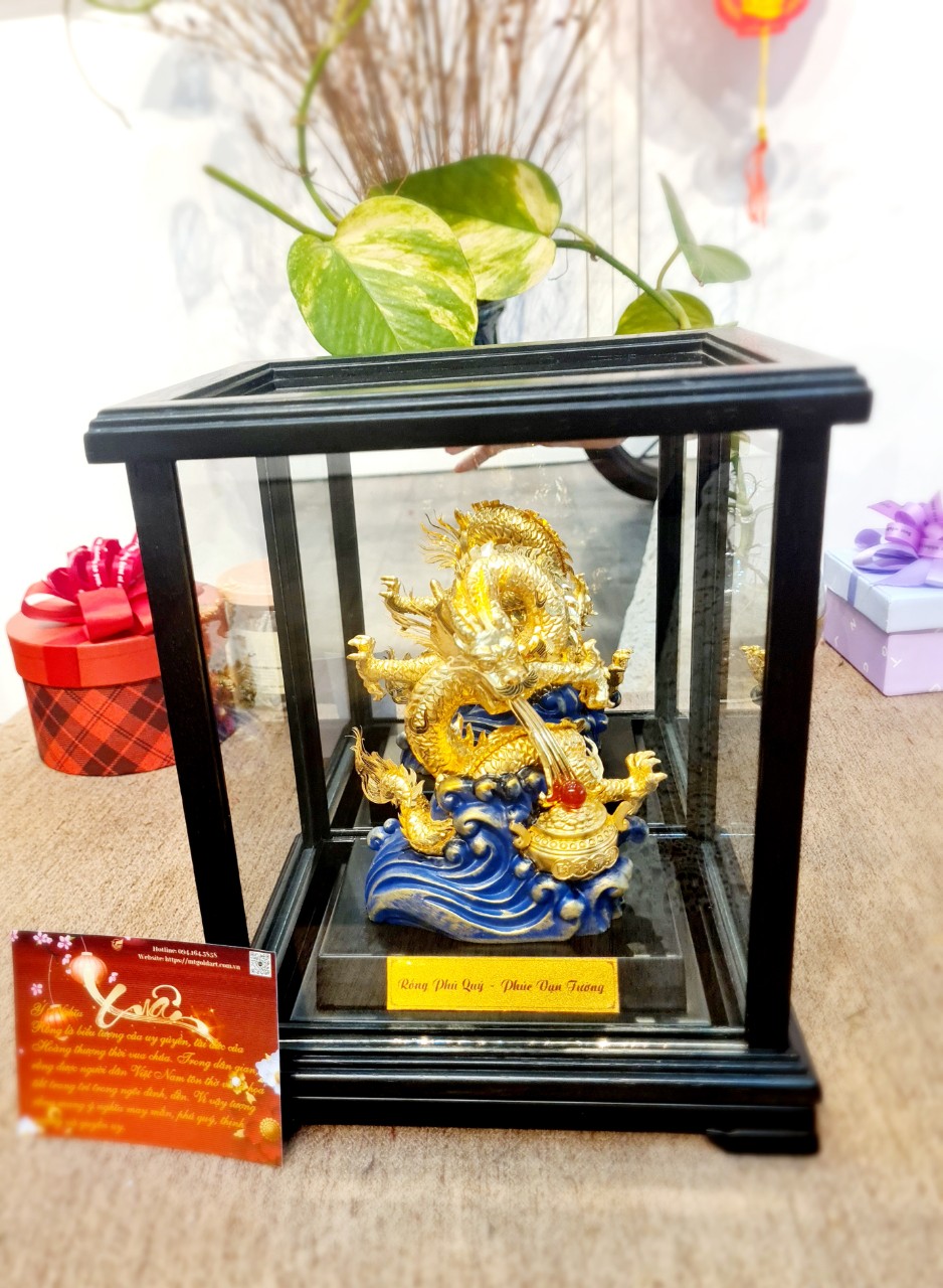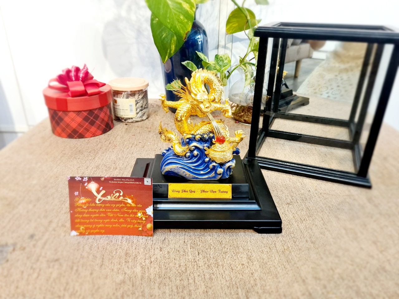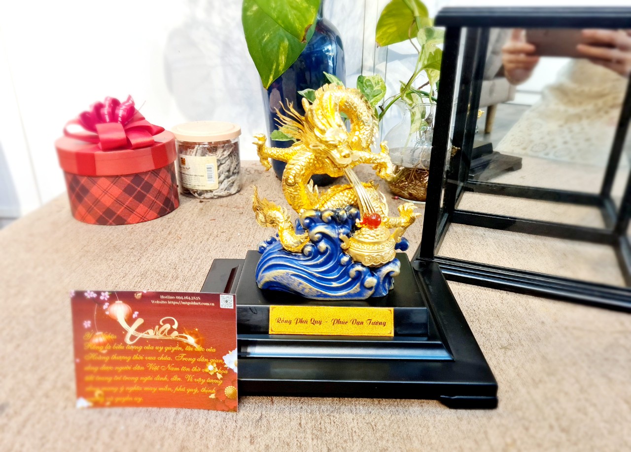 Rồng là biểu tượng của uy quyền, tài đức của Hoàng thượng thời vua chúa. Trong dân gian, rồng được người dân Việt Nam tôn thờ và là họa tiết trang trí trong ngôi đình, đền. Vì vậy tượng rồng mang ý nghĩa may mắn, phú quý, thịnh vượng và quyền uy. Tượng rồng bay dát vàng món quà cao cấp, ý nghĩa được nhiều người yêu thích. Đây là món quà thể hiện sự tôn trọng vầ mong muốn nhiều điều tốt đẹp đến với người nhận.