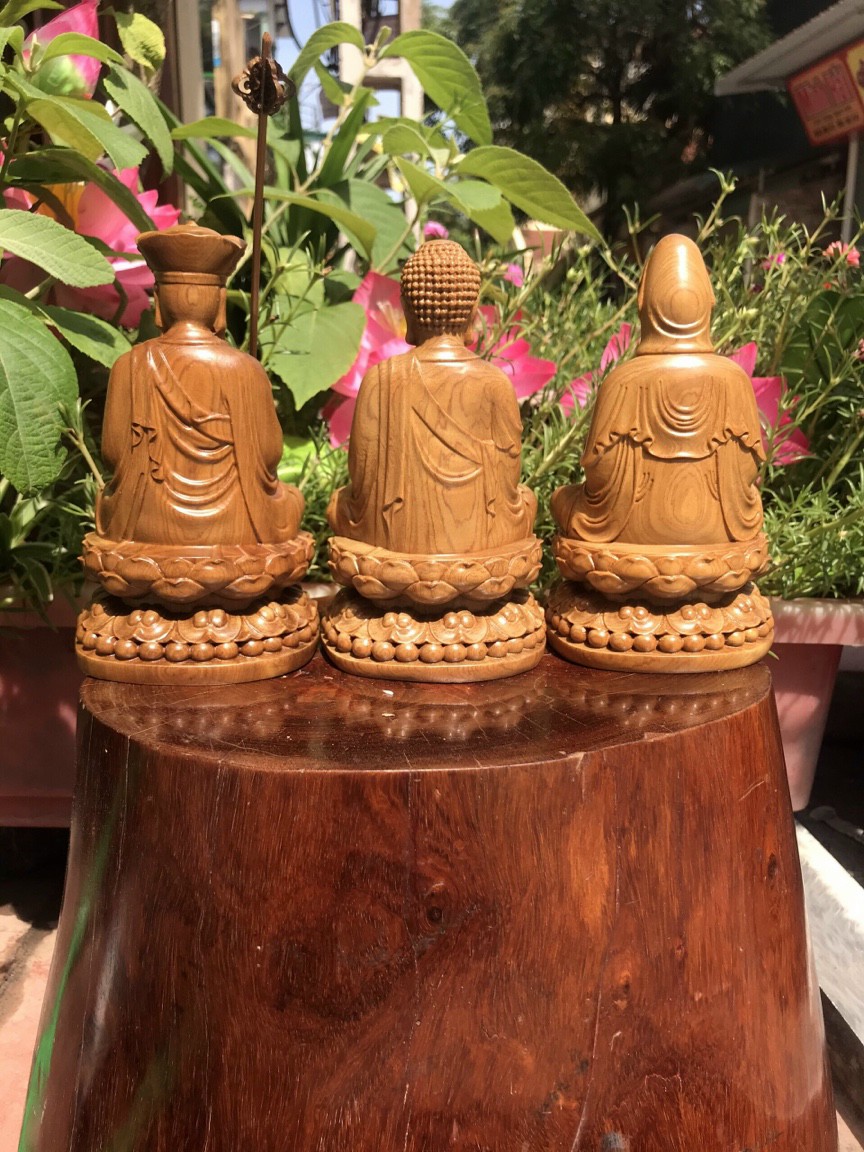Bộ tượng phật Tây Phương Tam Thánh mini cao 15cm và 20cm gỗ bách xanh