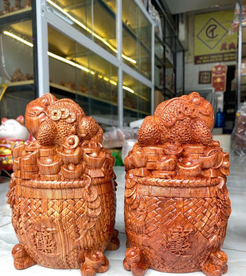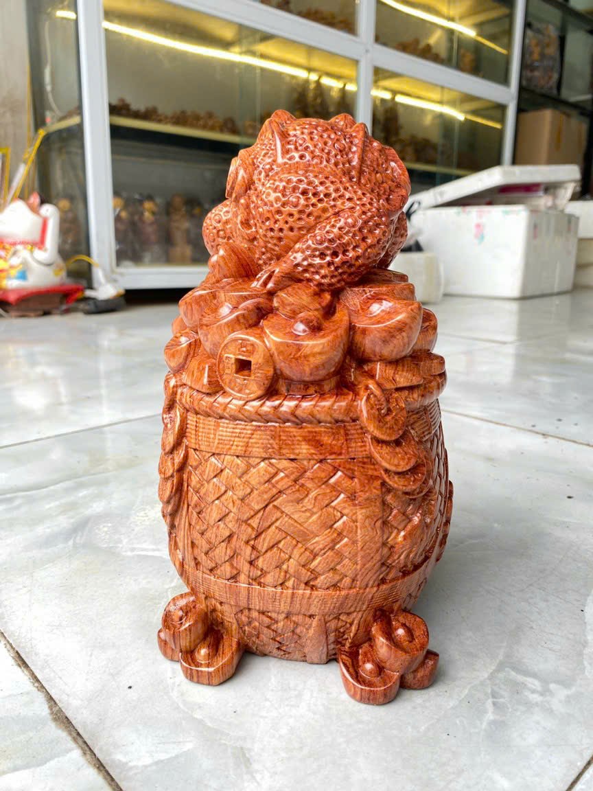 ✨Tượng thiềm thừ trấn thùng vàng phong thủy hút tài lộc bằng gỗ hương đá kt 25×15×14cm