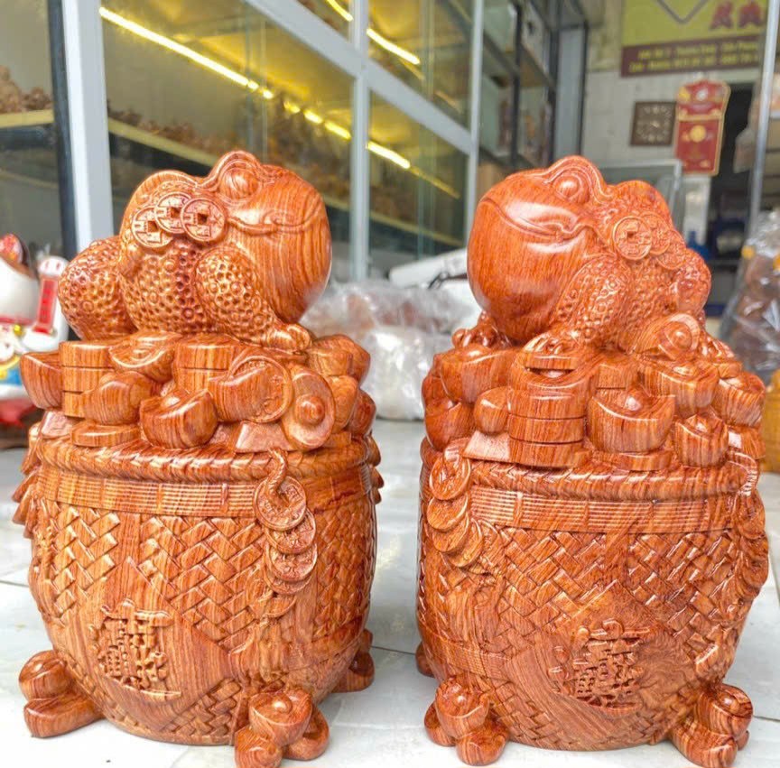 Tượng thiềm thừ phong thủy hút tài lộc được làm bằng chất liệu gỗ hương đá liền khối tự nhiên 100% Kt cao 25×15×14cm _ Tượng được chạm khắc tỉ mỉ ,tinh xảo kỳ công .Đi hầu hết tất cả mọi chi tiết góc ngách nội dung hoa văn của tượng đều được gọt tỉa chỉnh sửa sắc nét hoàn toàn bằng tay thủ công .Tượng được làm và hoàn thiện do bàn tay khối óc tài hoa .Từ những người thợ dầy dặn kinh nghiệm ,cũng như tay nghề cao trong làng nghế truyền thống . â