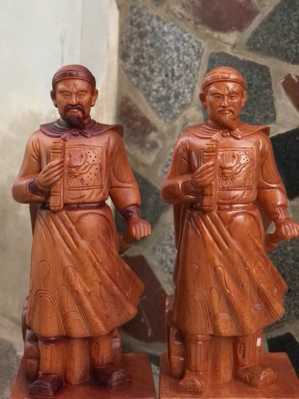 _ Combo cặp tượng quan văn khổng minh gia cát lượng Và quan võ quan công đuọc làm bằng chất liệu gỗ bách xanh liền khối tự nhiên 100% _ kt cao 30x11x9cm _ Cặp