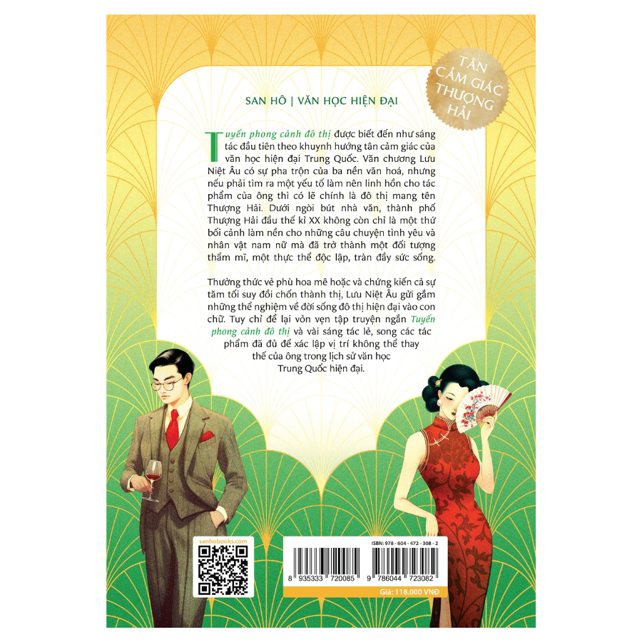 Tuyến Phong Cảnh Đô Thị Tuyến phong cảnh đô thị là tuyển tập gồm tám truyện ngắn của Lưu Niệt Âu, được biết đến như sáng tác đầu tiên theo khuynh hướng tân cảm giác của văn học hiện đại Trung Quốc. Văn chương Lưu Niệt Âu có sự pha trộn của ba nền văn hoá, nhưng nếu phải tìm ra một yếu tố làm nên linh hồn cho tác phẩm của ông thì có lẽ chính là đô thị mang tên Thượng Hải. Dưới ngòi bút nhà văn, thành phố Thượng Hải đầu thế kỉ XX không còn chỉ là một thứ bối cảnh làm nền cho những câu chuyện tình yêu và nhân vật nam nữ mà đã trở thành một đối tượng thẩm mĩ, một thực thể độc lập, tràn đầy sức sống. Thưởng thức vẻ phù hoa mê hoặc và chứng kiến cả sự tăm tối suy đồi chốn thành thị, Lưu Niệt Âu gửi gắm những thể nghiệm về đời sống đô thị hiện đại vào con chữ. Tuy chỉ để lại vỏn vẹn một tập truyện ngắn Tuyến phong cảnh đô thị và vài sáng tác lẻ, song tác phẩm đã đủ để xác lập vị trí không thể thay thế của ông trong lịch sử văn học và điện ảnh Trung Quốc hiện đại. “Những nhân vật đó, cũng như Lưu Niệt Âu, là những đứa con cưng của Thượng Hải. Họ sống, làm việc, vui chơi và yêu đương theo các quy luật do thành phố đặt ra. Trong mỗi câu chuyện cụ thể dưới ngòi bút của Lưu Niệt Âu, ta thấy dường như họ đang theo đuổi tiền tài, danh vọng, tình yêu hay dục vọng,… Nhưng khi nhìn một cách tổng thể, ta mới phát hiện ra rằng những thứ đó chẳng qua chỉ là biến thể mang tên gọi khác nhau của cùng một giấc mơ có tên “thành phố”.”– TS Nguyễn Thị Diệu Linh, Lưu Niệt Âu và giấc mơ mang tên “Thượng Hải”. Lưu Niệt Âu (1905-1940), tên thật Lưu Xán Ba, là nhà văn quê quán Đài Loan. Ông được biết đến nhờ những sáng tác tiên phong, mở đường cho trường phái Tân cảm giác tại Trung Quốc. Năm 1940, ông bị ám sát ngay sau khi nhậm chức Tổng Biên tập Quốc dân nhật báo, di sản văn chương để lại chỉ duy nhất tập truyện ngắn Tuyến phong cảnh đô thị cùng vài sáng tác lẻ.