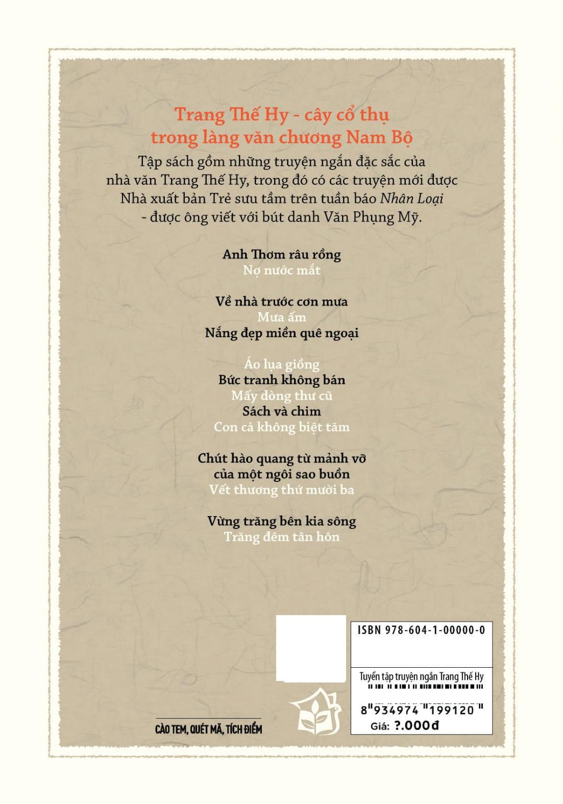 Nhân kỷ niệm 100 năm ngày sinh của nhà văn Trang Thế Hy (29.10.1924 – 29.10.2024) – một cây cổ thụ của làng văn chương Nam Bộ, Nhà xuất bản Trẻ tuyển những truyện ngắn đặc sắc nhất của ông để giới thiệu đến bạn đọc.