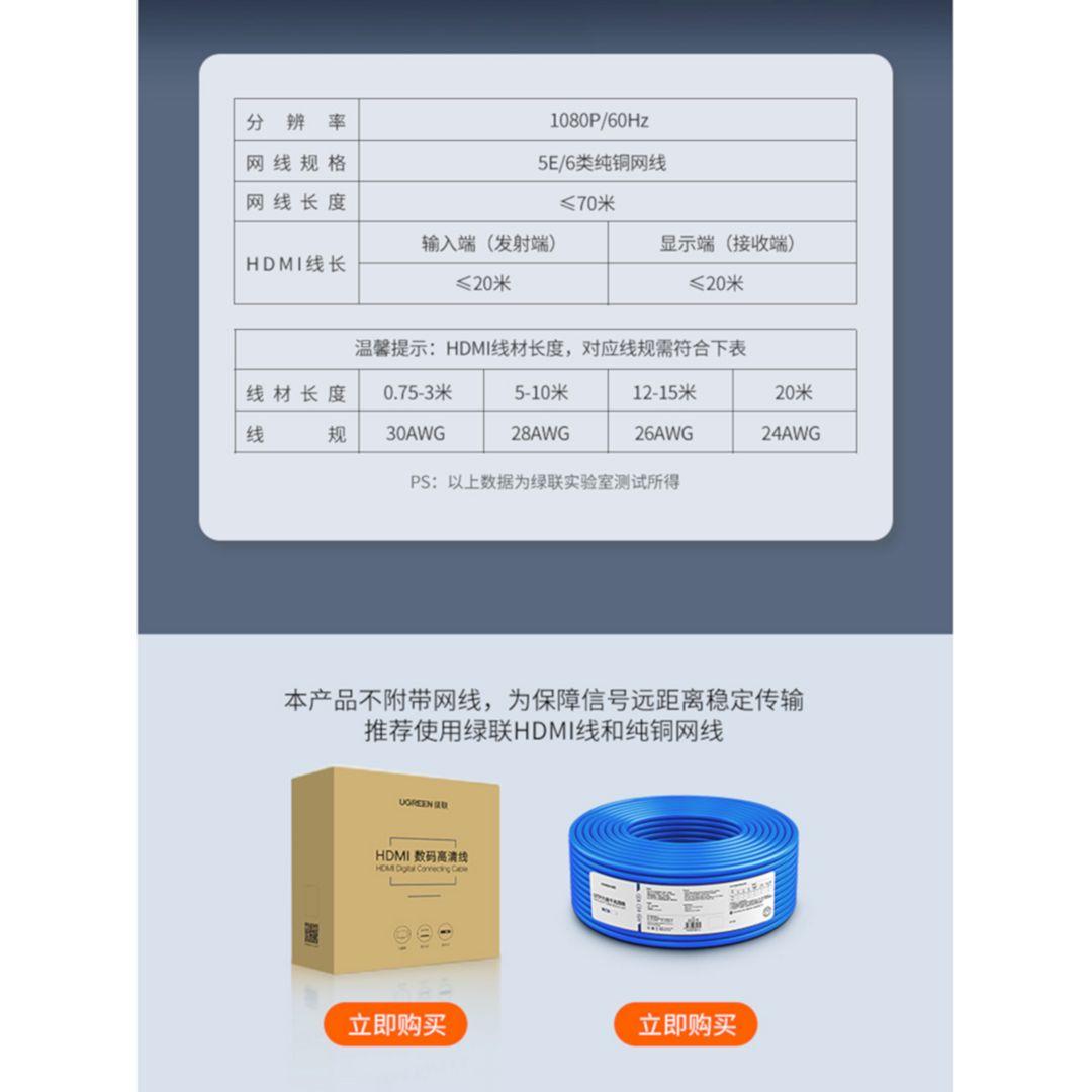 Bộ Khuếch đại HDMI 70m qua cáp mạng Ugreen 20519 là giải pháp kết nối hình ảnh và âm thanh cho các thiết bị ở cự ly xa qua sợi cáp mạng Cat5e/6, hỗ trợ độ phân giải lên đến FullHD 1080P@60Hz, phù hợp sử dụng cho công trình, sân khấu, trường học, trung tâm thương mại….