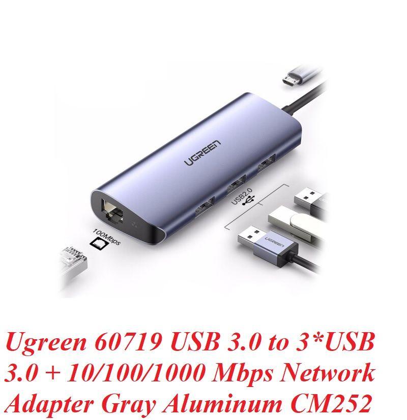 ✨Ugreen 60719 hub USB 3.0 ra 3*USB 3.0 + 10/100/1000 gigabit lan màu xám chất liệu nhôm cổng nguồn micro Ugreen CM252 - Hàng Chính Hãng
