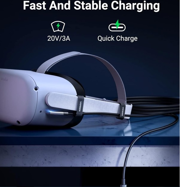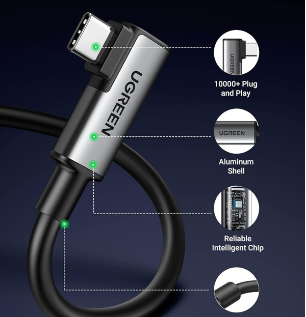 Cáp liên kết VR Ugreen 90629 USB C tương thích hoàn hảo với Oculus/Meta Quest 2/1, kết nối tai nghe VR với PC chơi game của bạn, cho phép bạn truy cập vào nhiều lựa chọn trò chơi Oculus Rift và ngày càng phát triển. Trò chơi Steam VR, mang đến cho bạn trải nghiệm chơi game VR thú vị.