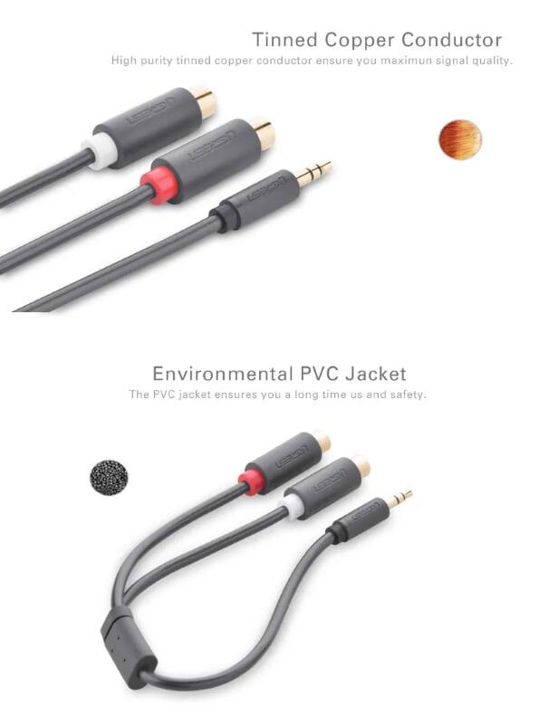 - Cáp Chuyển Đổi Ugreen 3.5mm Sang 2 RCA 10511 (1.5m) được dùng để kết nối từ điện thoại, máy tính, máy nghe nhạc… đến các thiết bị âm thanh có chuẩn RCA (hoa sen)