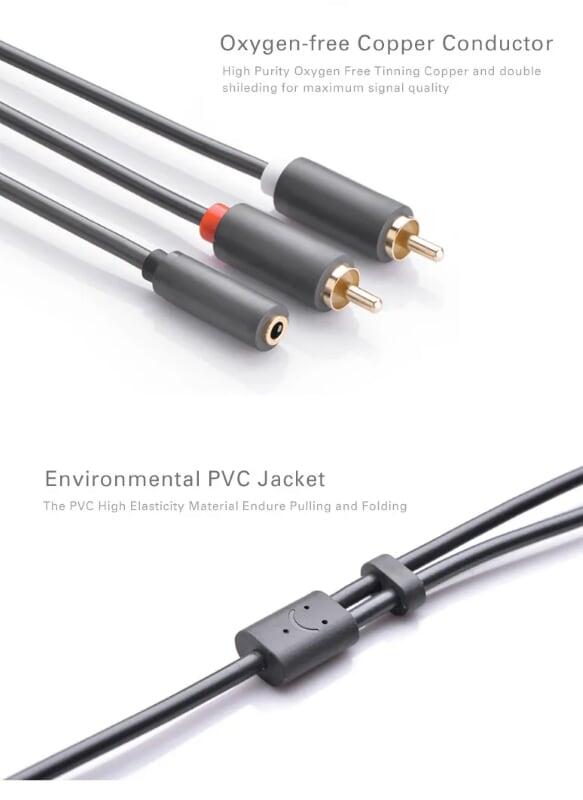 - Cáp Chuyển Đổi Ugreen 3.5mm Sang 2 RCA 10511 (1.5m) được dùng để kết nối từ điện thoại, máy tính, máy nghe nhạc… đến các thiết bị âm thanh có chuẩn RCA (hoa sen)
