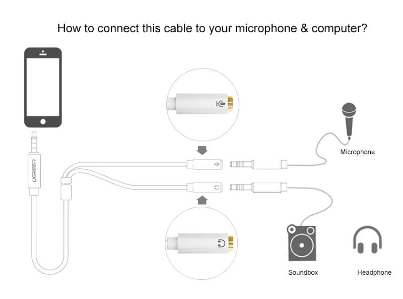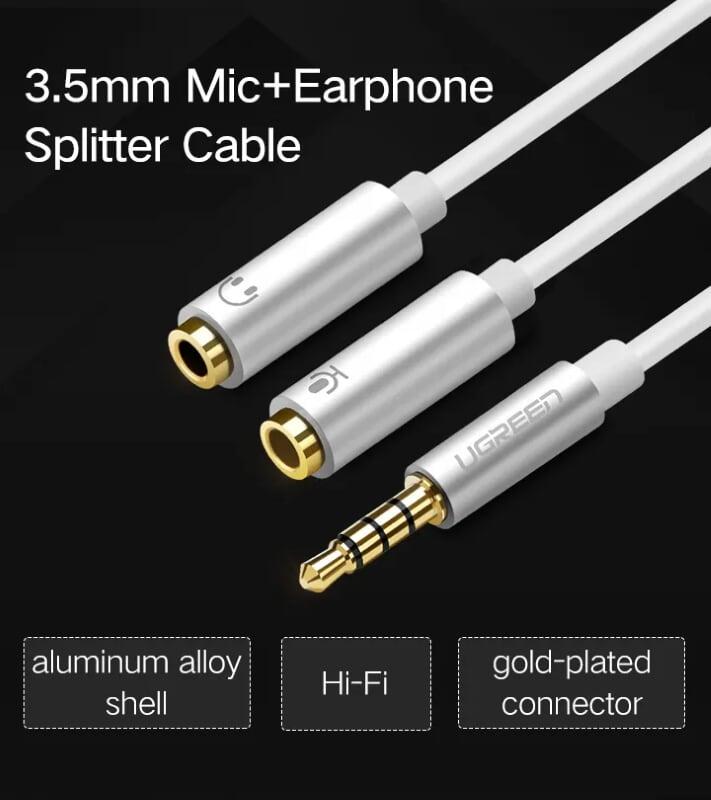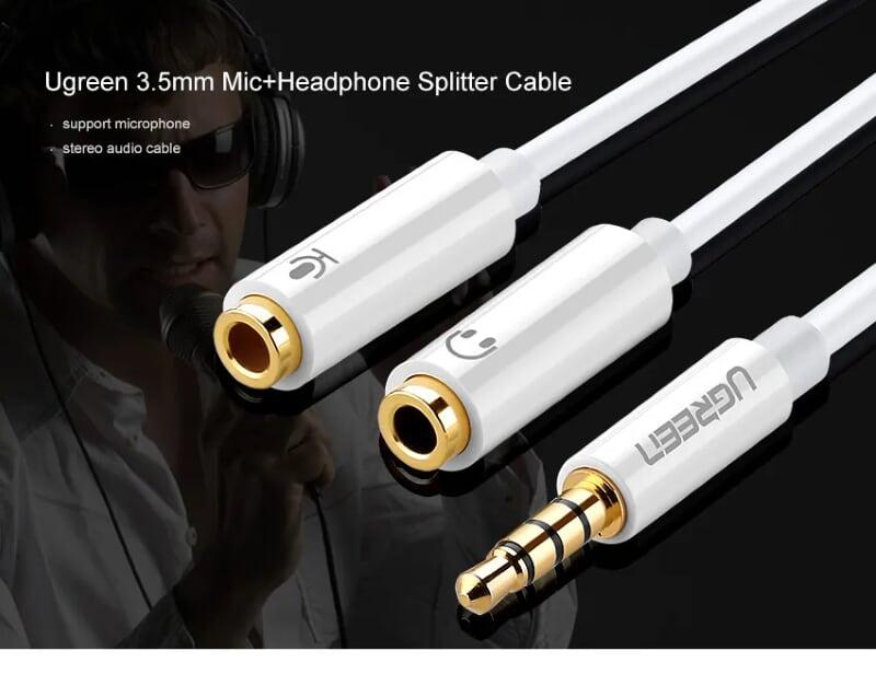 ✨Ugreen UG10789AV141TK 20CM màu Trắng Dây chuyển âm thanh 3.5mm dương sang Jack Mic + Loa âm - HÀNG CHÍNH HÃNG