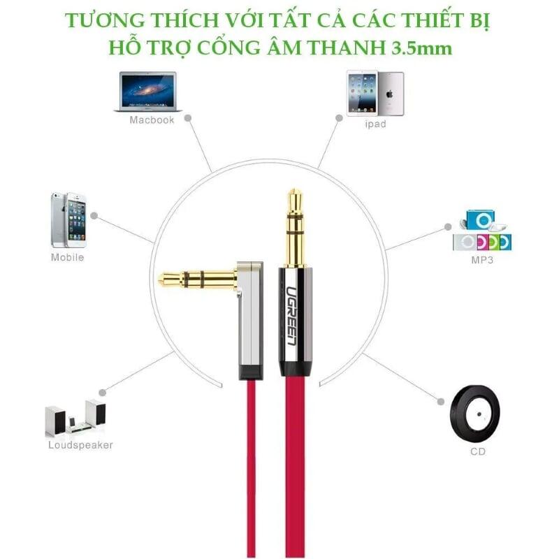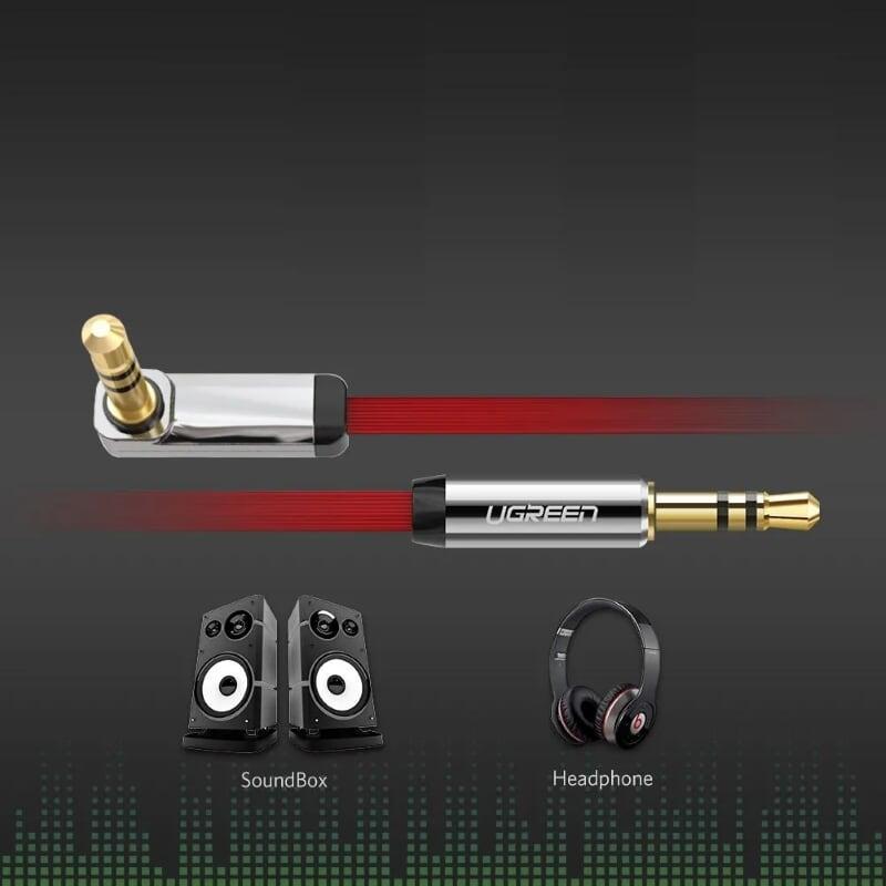 ✨Ugreen UG10798AV119TK 1M Đỏ Cáp âm thanh 2 đầu 3.5mm dương chữ L dây dẹt - HÀNG CHÍNH HÃNG