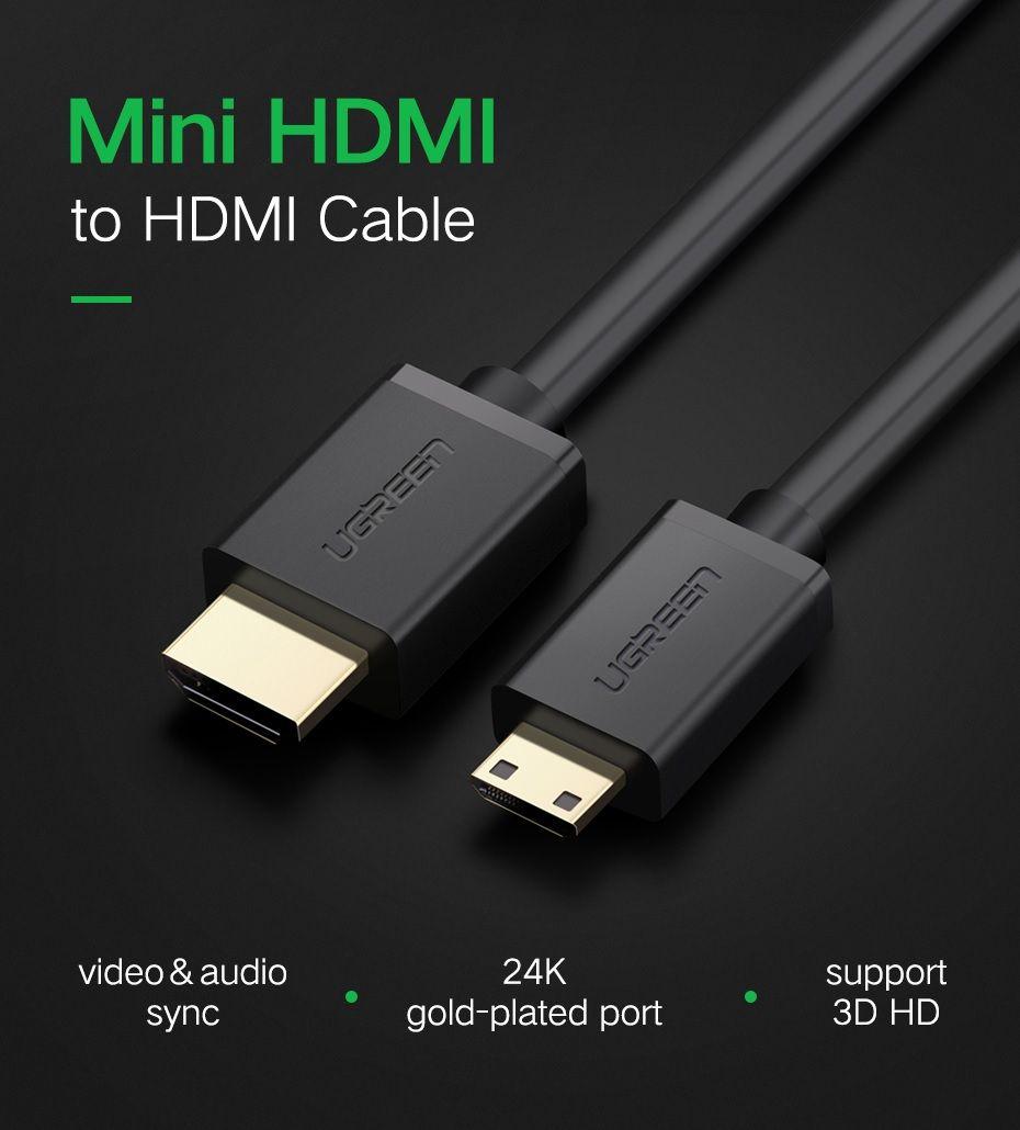 Ugreen 10195 1M Mini Hdmi To Hdmi Cable 1.4 Hd108 1. Cable length: 1M 2. Support high speed signal transmission up to 10.8Gbps. 3. Support Dolby TrueHD and DTS-HD Master Audio. 4. Add high-speed network