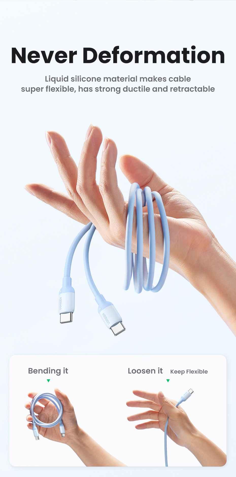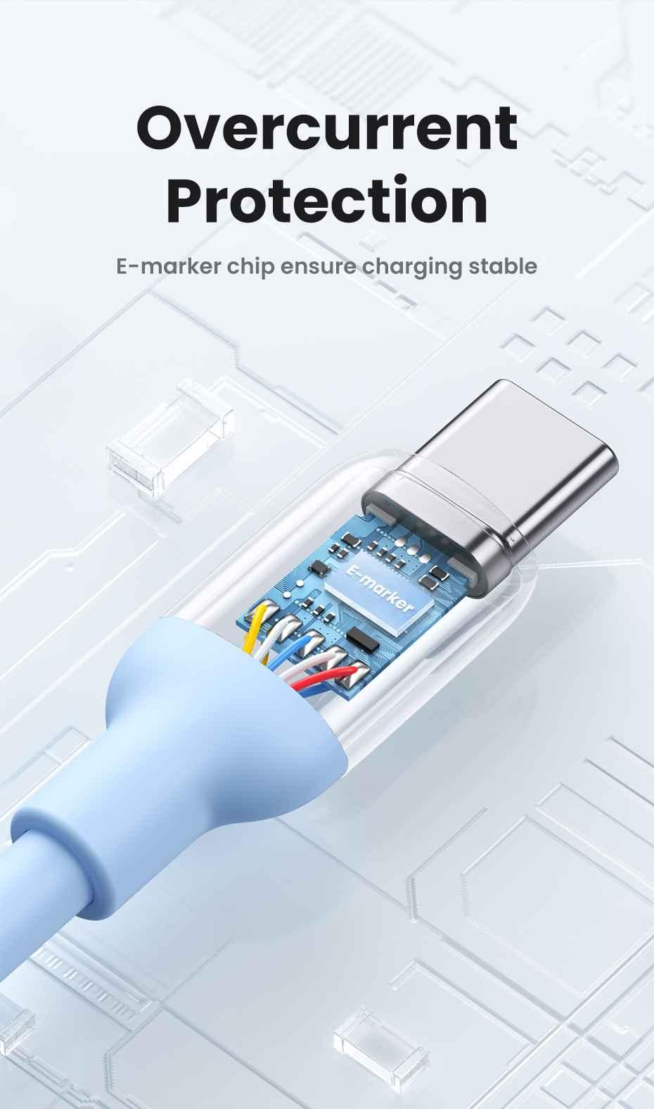 1. Cable : type C to type C 2. Function : Charging and Data Transfer 3. Material: TPE 4. Current: 5A 5.PD100W 6.Speed: 480 Mpbs 7.Cable Core: Tinned Copper 8. With E-marker chip