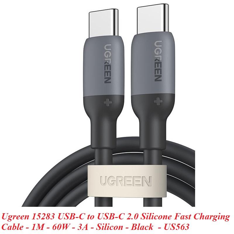 ✨Ugreen UG15283US563TK 60W 1M hỗ trợ QC4.0 3A Cáp sạc nhanh - truyền dữ liệu 2 đầu USB-C c-c dây nhựa Màu Đen - HÀNG CHÍNH HÃNG