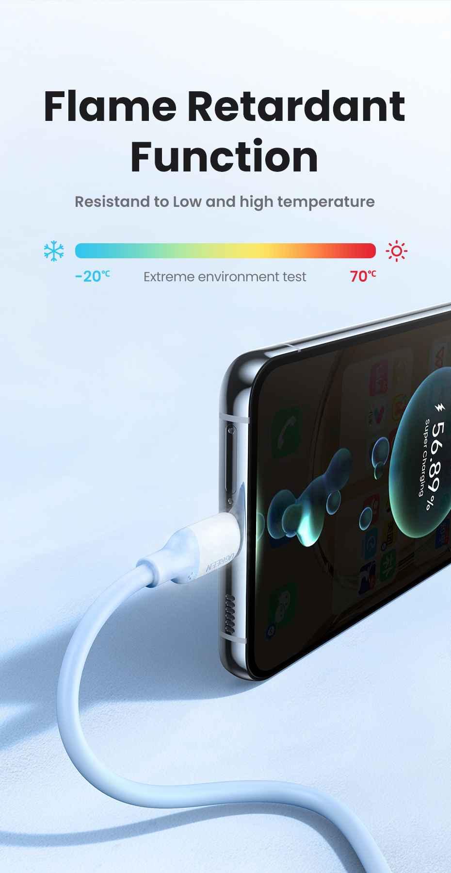 1. Function: Charging & Data Sync 2. USB 2.0 speed up to 480Mbps 3. 5A fast charge 4. Support PD3.0/QC4.0/FCP(100W max) 5. Wire core: tin-plated oxygen free copper 6. Multiple internal shielding 7. Can not