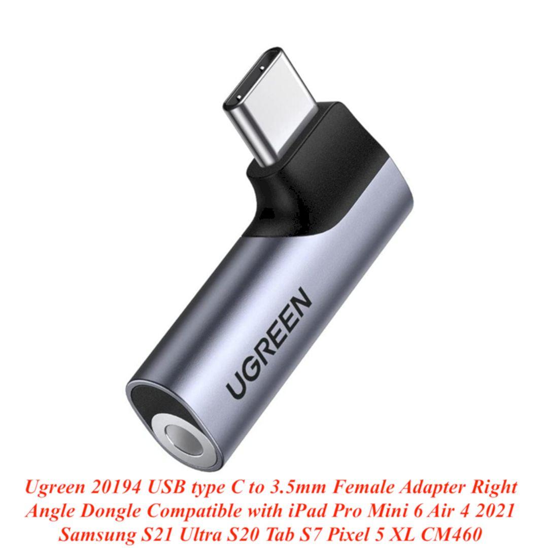 ✨Ugreen UG20194CM460TK DAC Góc phải Đầu chuyển đổi USB-C sang 3,5mm chip Aux DAC Tương thích với iPad Pro Air 4 Mini 6 2021, Samsung S22 S21 Ultra S20 Tab S7, Pixel 5 XL - HÀNG CHÍNH HÃNG