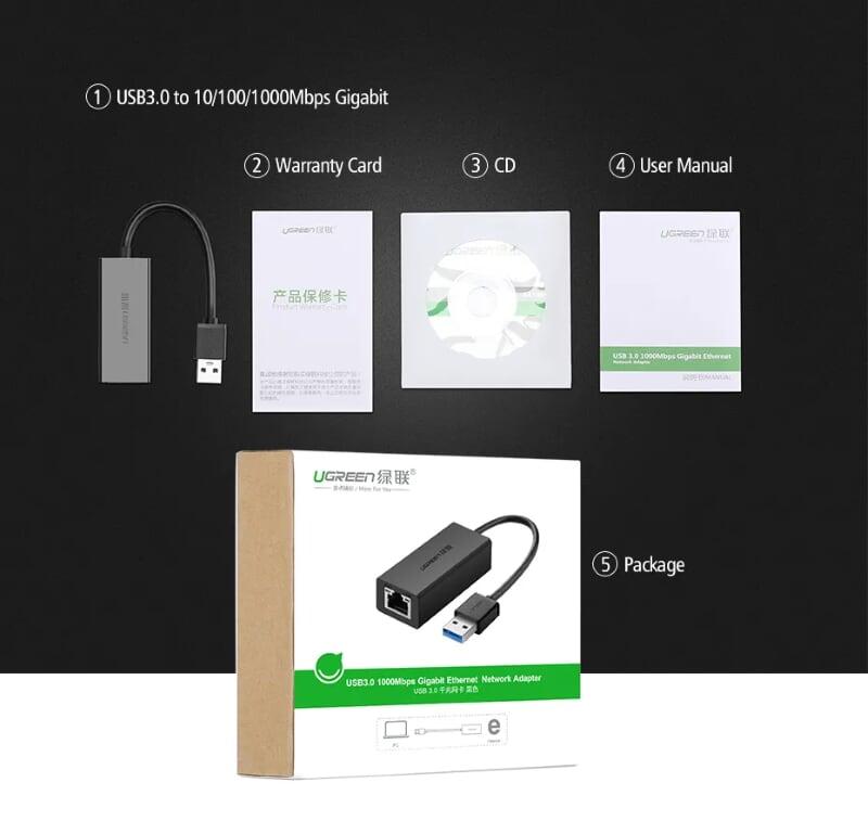 Ugreen 50922 Đầu Chuyển Đổi USB 3.0 Sang RJ45 Lan 10/100/1000Mbps Gigabit Cho PC Windows 10 ...