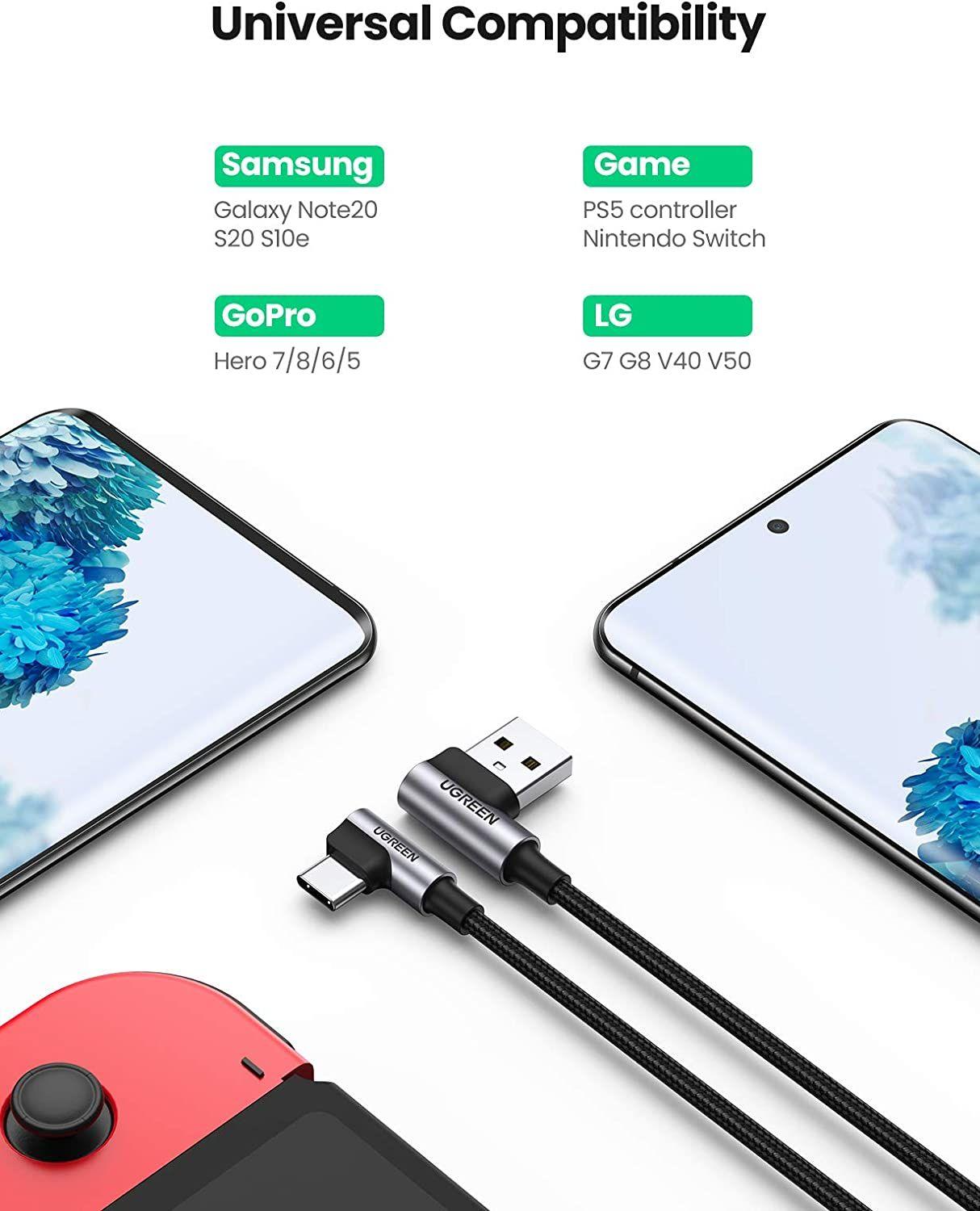 ✨Ugreen UG20856US176TK 1M 2 đầu bẻ góc 90 độ cáp usb type C ra A mạ Nickel đầu bọc nhôm chống nhiễu - HÀNG CHÍNH HÃNG