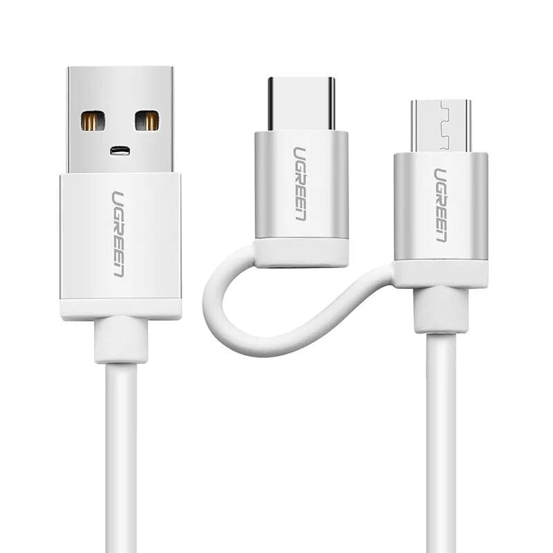 Ugreen 40418 Usb 2.0 To Micro Usb + Type C Data Cable White 1.5M Us142 1. Features: connect Laptop, Tablet USB-C port to digital camera, DSLR, music player, GPS Mini USB port 2. Cable length: