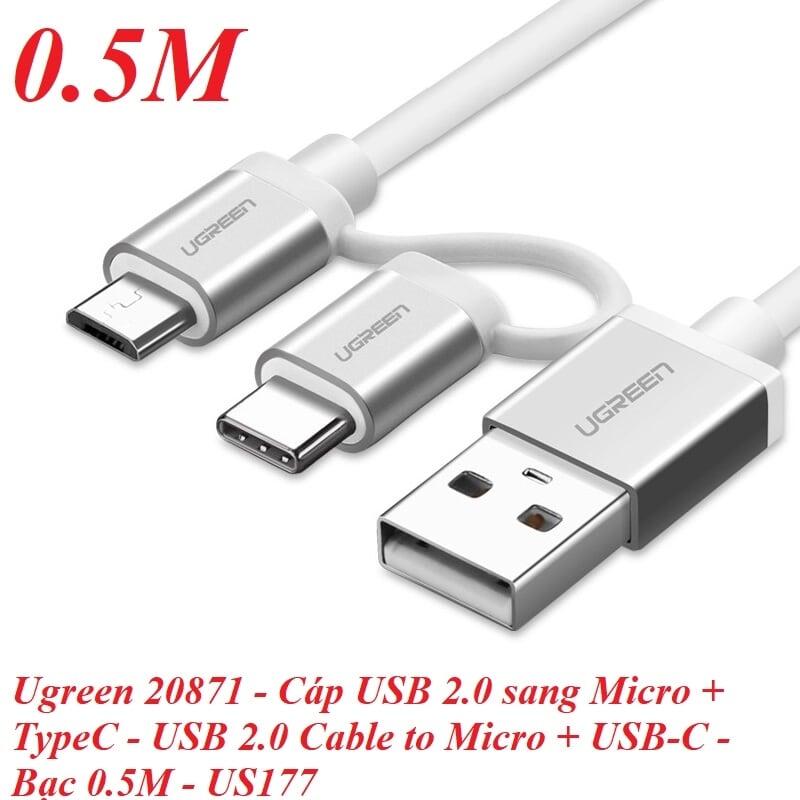 Ugreen 20871 Micro Usb Cable With Usb C Adapter Silver 0.5M Us177