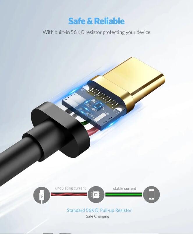 1. Connector A: USB A 2. Connector B: USB C 3. Charging Speed: 5V/3A (Max.) 4. Data Transfer: 480Mbps 5. This USB C charging cable fully complies with USB-C fast charge protocol and a built-in