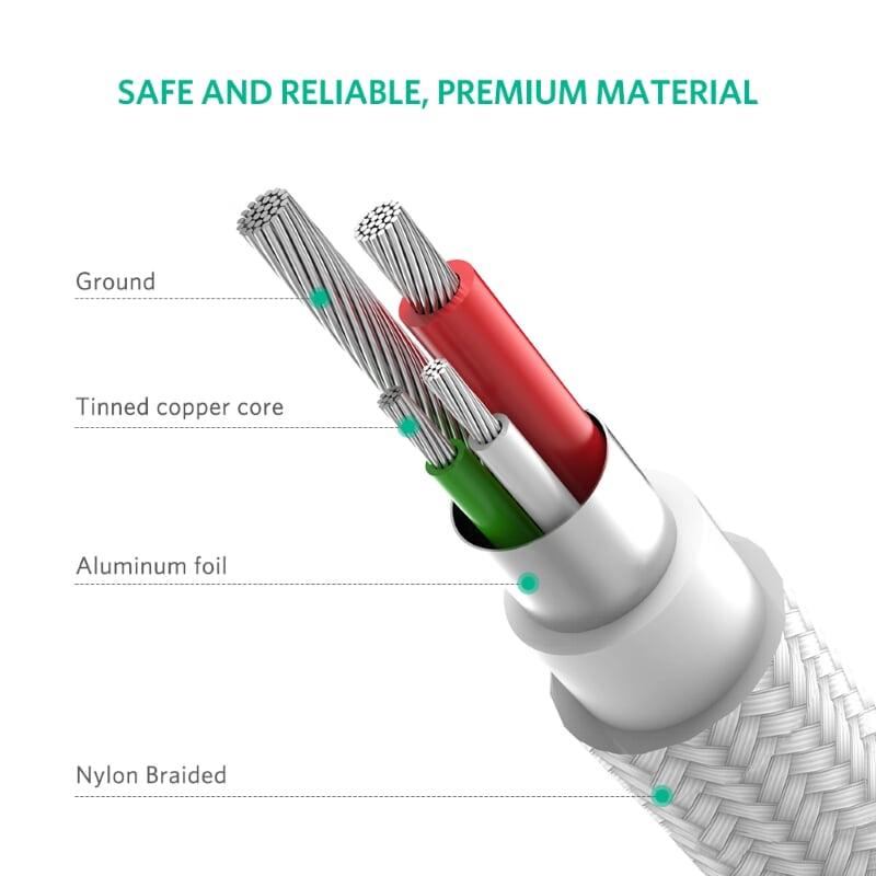Ugreen 30656 1.5m micro usb data cable aluminum case trắng us134