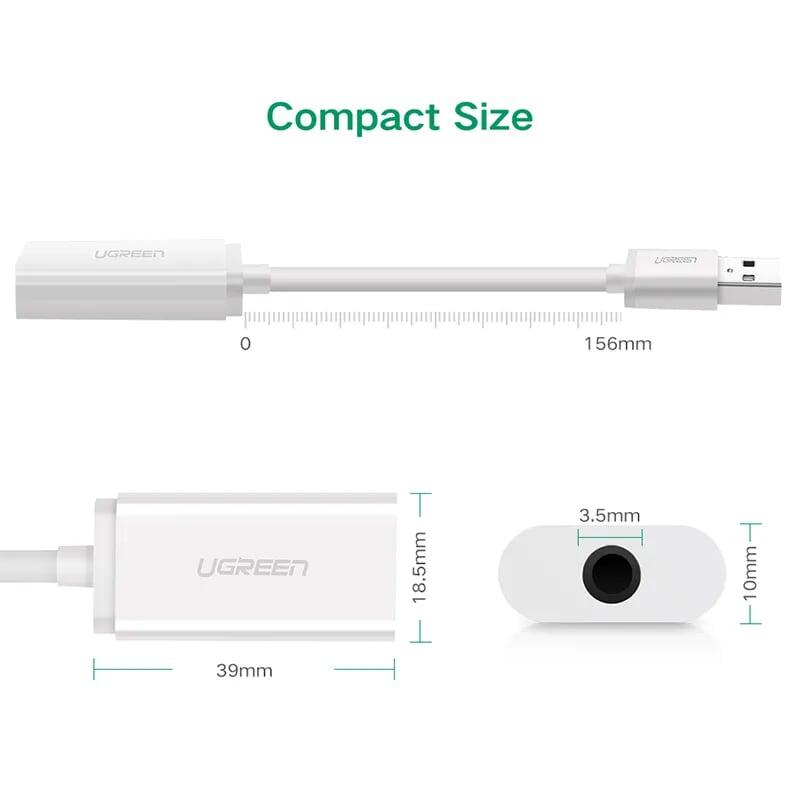 ✨Ugreen UG30712US206TK 15CM màu Trắng Bộ chuyển USB 2.0 sang âm thanh 3.5mm - HÀNG CHÍNH HÃNG