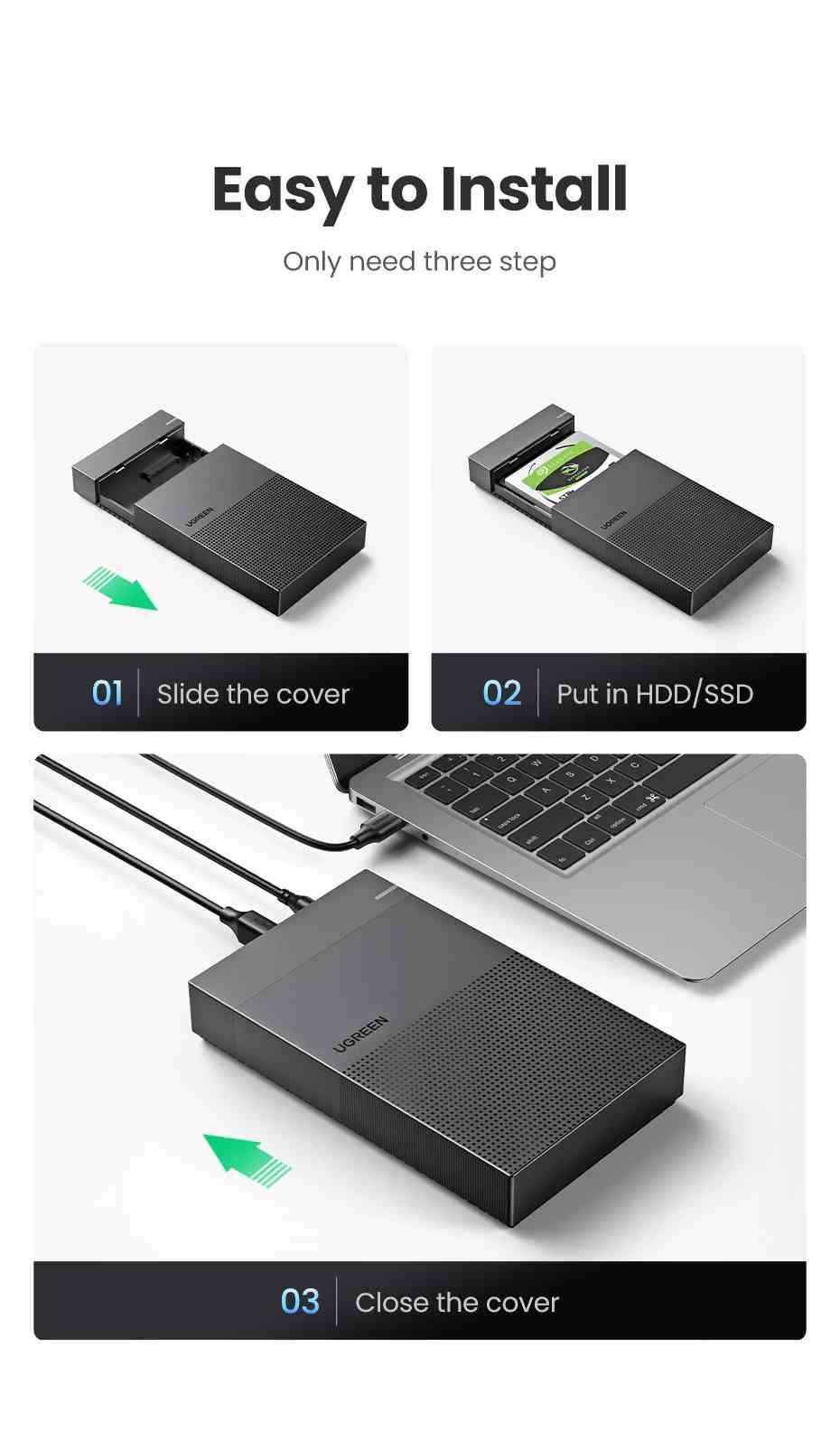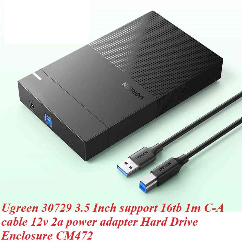 ✨Ugreen UG30729CM472TK 3.5inch 16Tb 1M Hộp đựng ổ cứng SATA hổ trợ 16Tb kèm cáp USB-A sang USB-C hổ trợ nguồn 12v-2A - HÀNG CHÍNH HÃNG