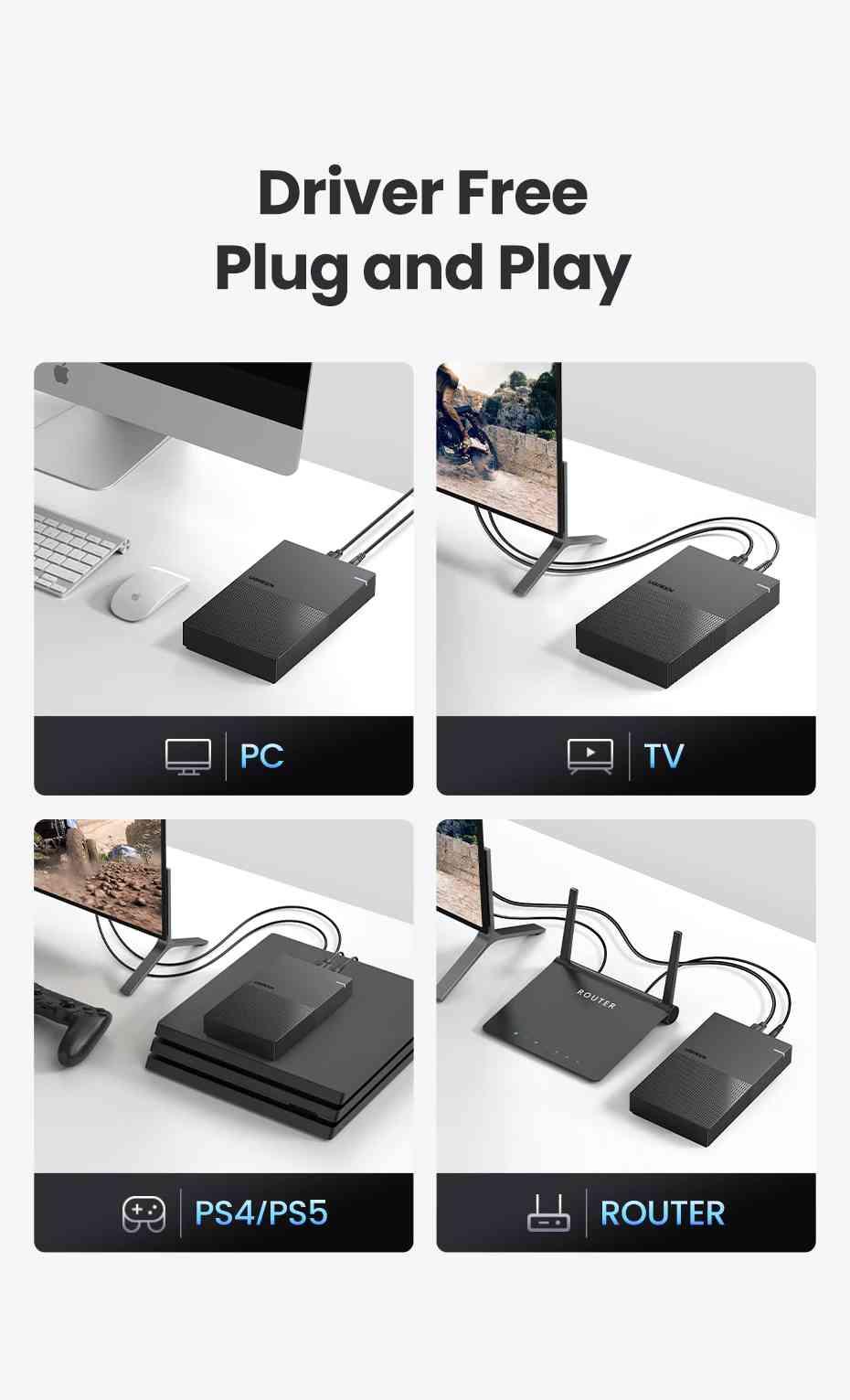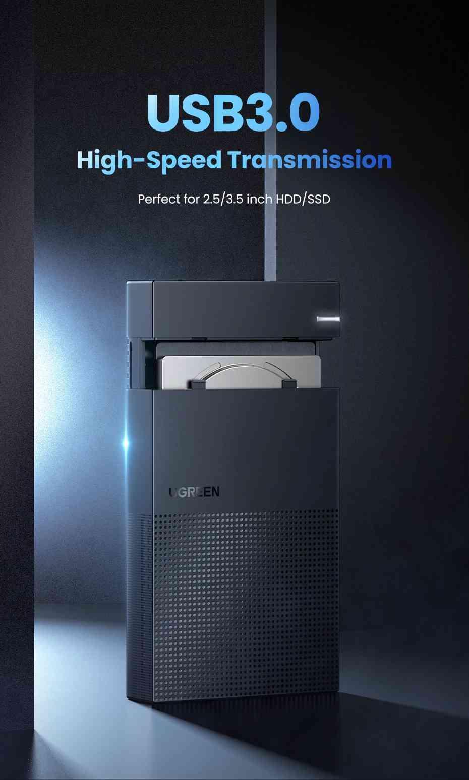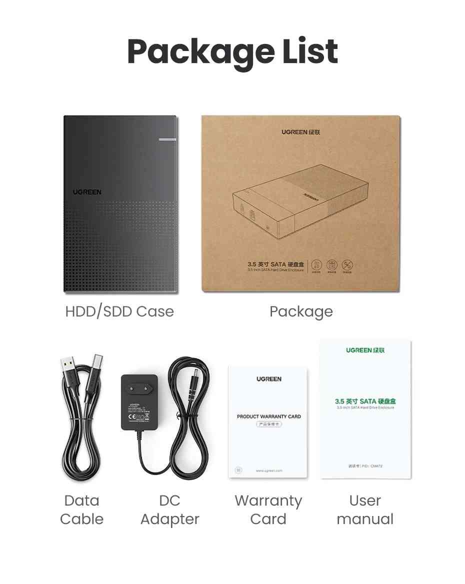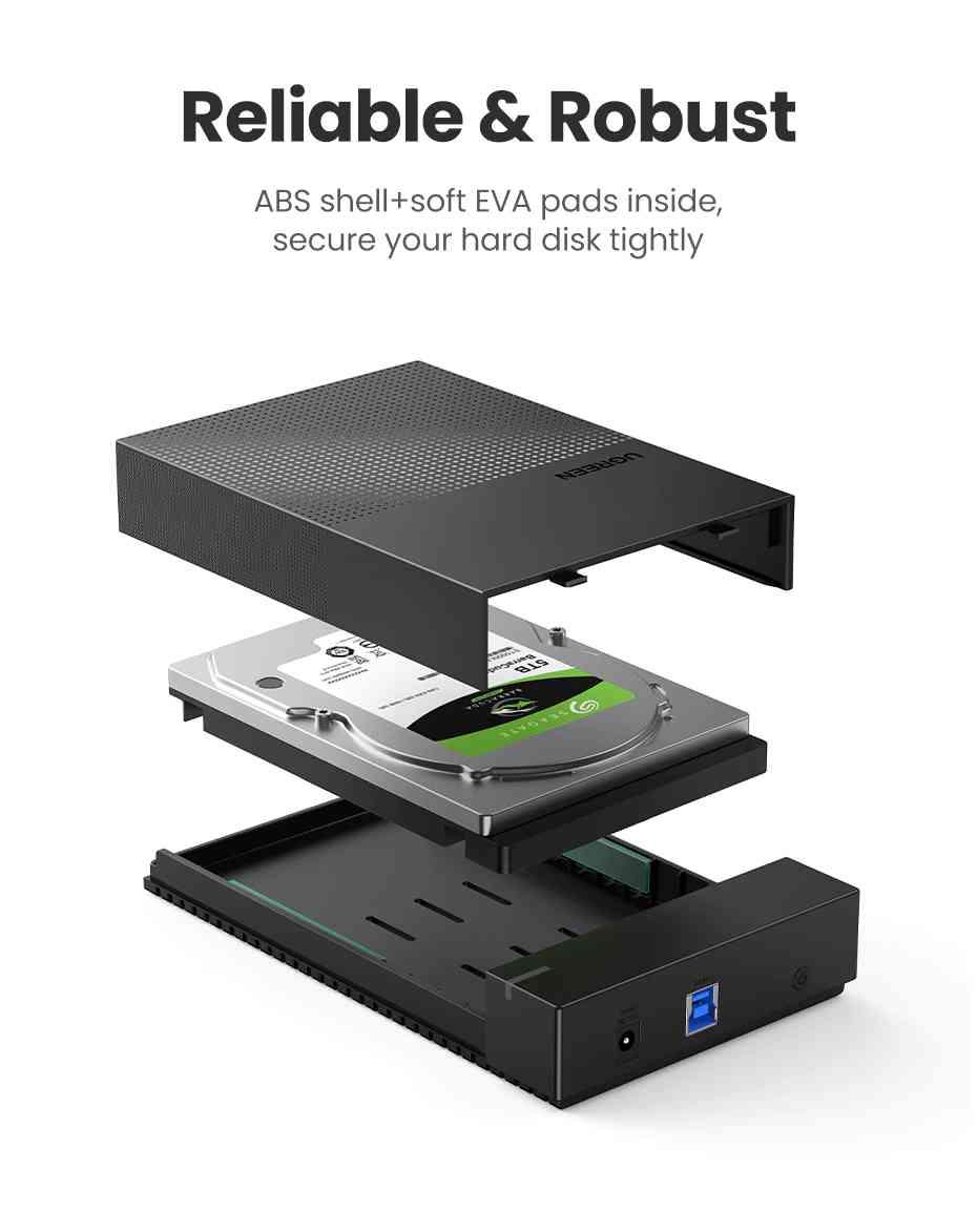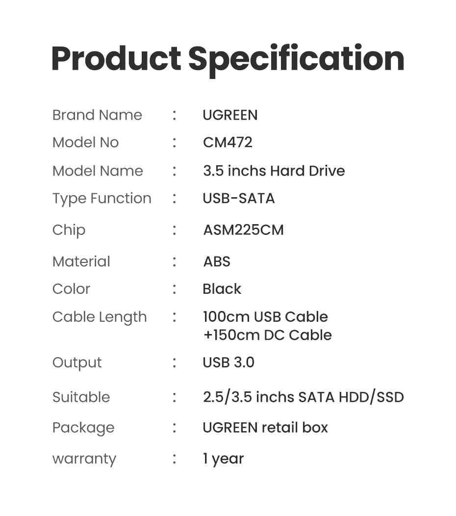 Ugreen 50422 usb 3.0 3.5 inch hard disk box black us222 1. Input:USB3.0-B Female adapter 2. Output:(7+15)Pin SATA port 3. Suppot UASP transport protocol 2. Support SATA 3.0 compatible with SATA 2.0/SATA 1.0 4. Support